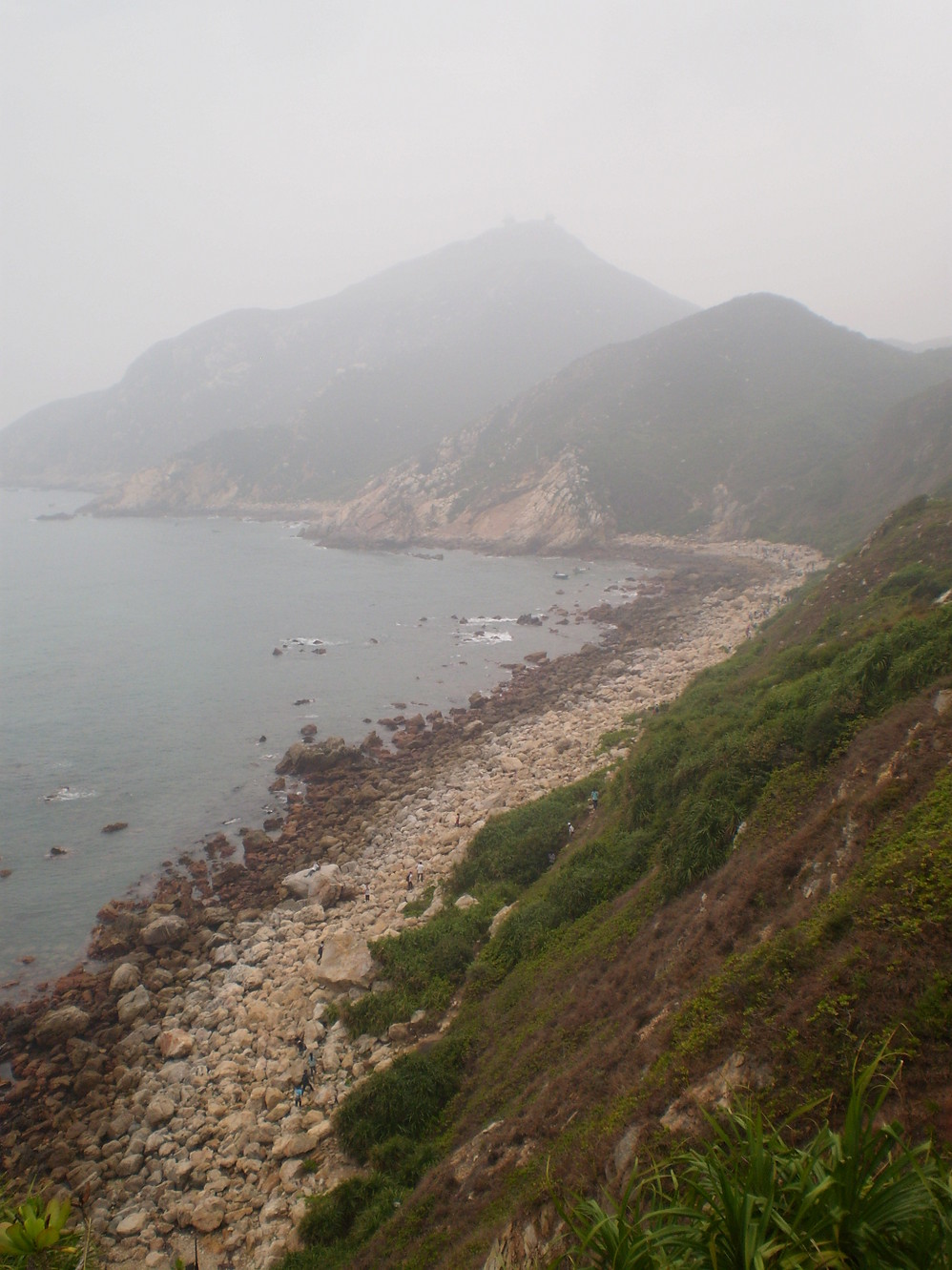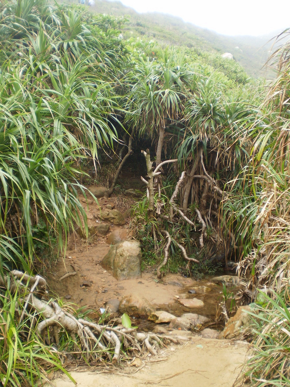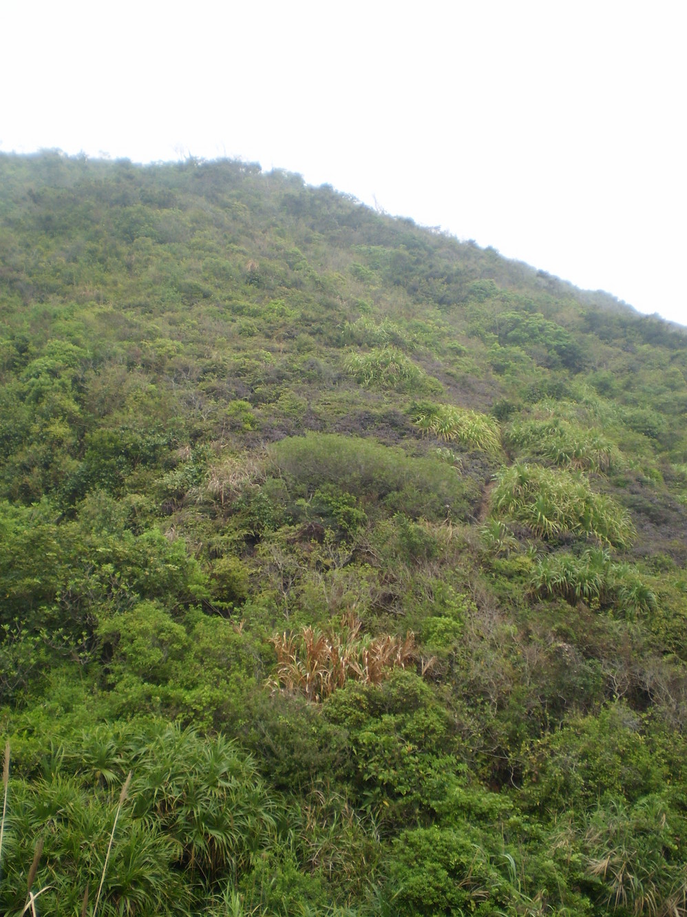从东冲的小溪边爬到山头上,(我从东冲到西冲是先走的一段山路,然后走的海边,这段山路在谷歌地图上都能看到.实际上很难走,不知道这段走海滩可不可以.)看见灌木丛中间的缝隙没,那就是路.