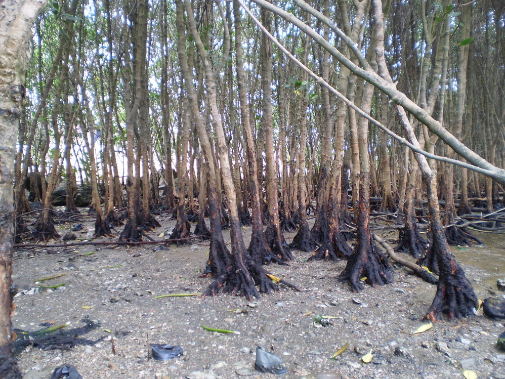 城市扩张下保留下来的红树林