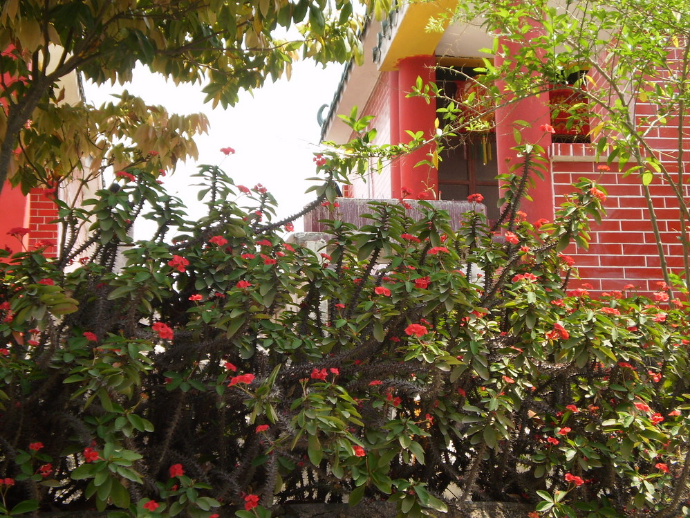铁仔山上的天后宫.小香小庙是很有趣的.前面的红花是虎刺梅,个人觉得跟小庙很配.