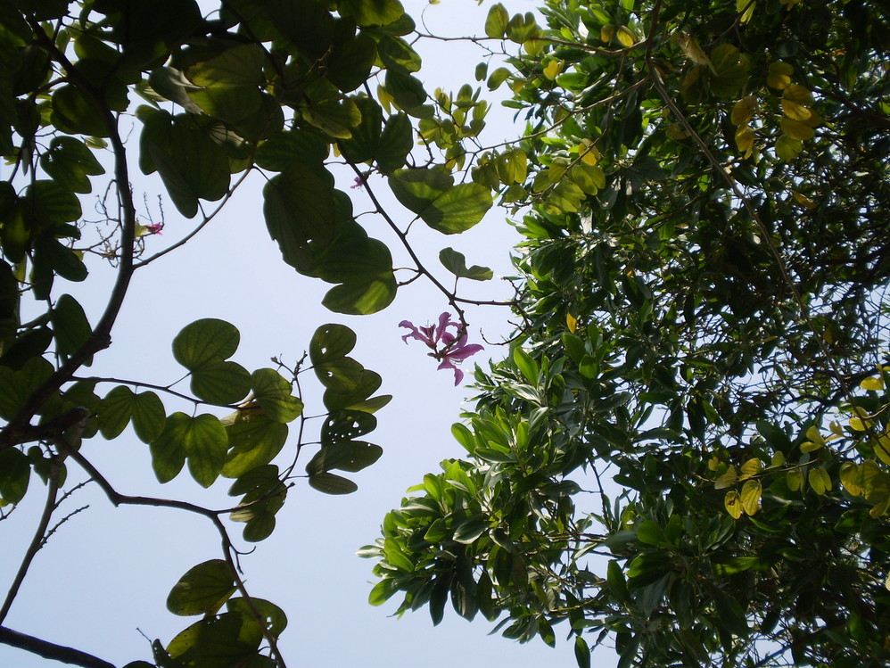 庙后面的树,左边是洋紫荆(香港市花),右边是相思树(叶子的脉络比较特别).