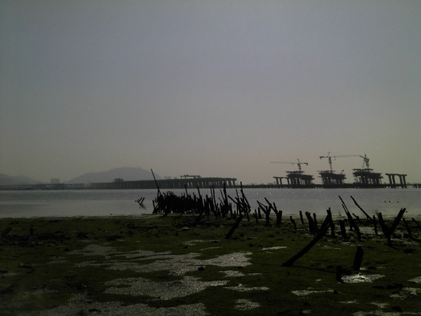 远景是香港机场和南头半岛之间(通往宝安机场)的跨海大桥.深圳湾的海水让我告诉你不要嫌弃它!
