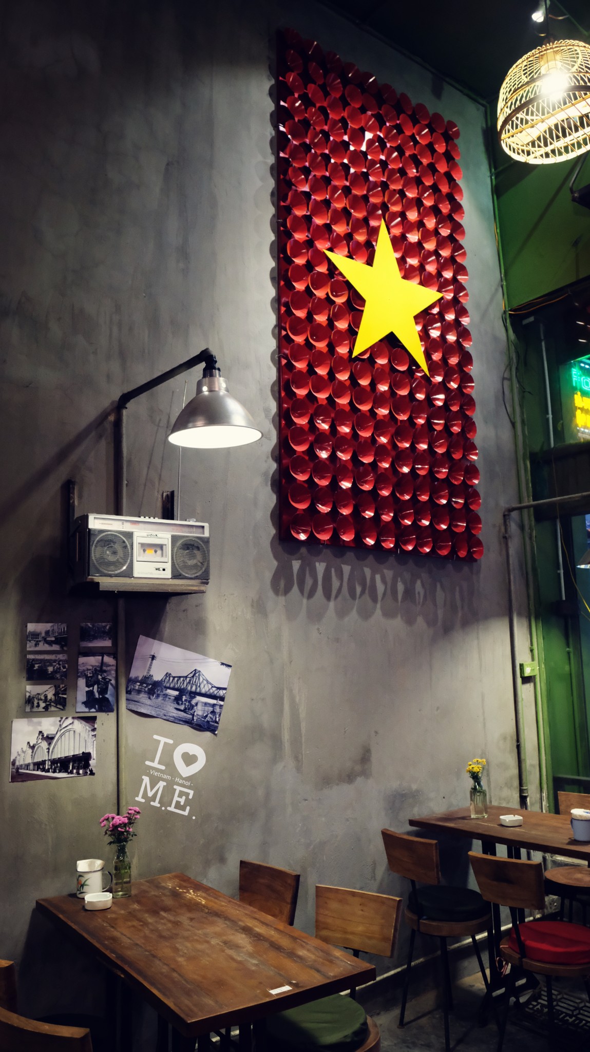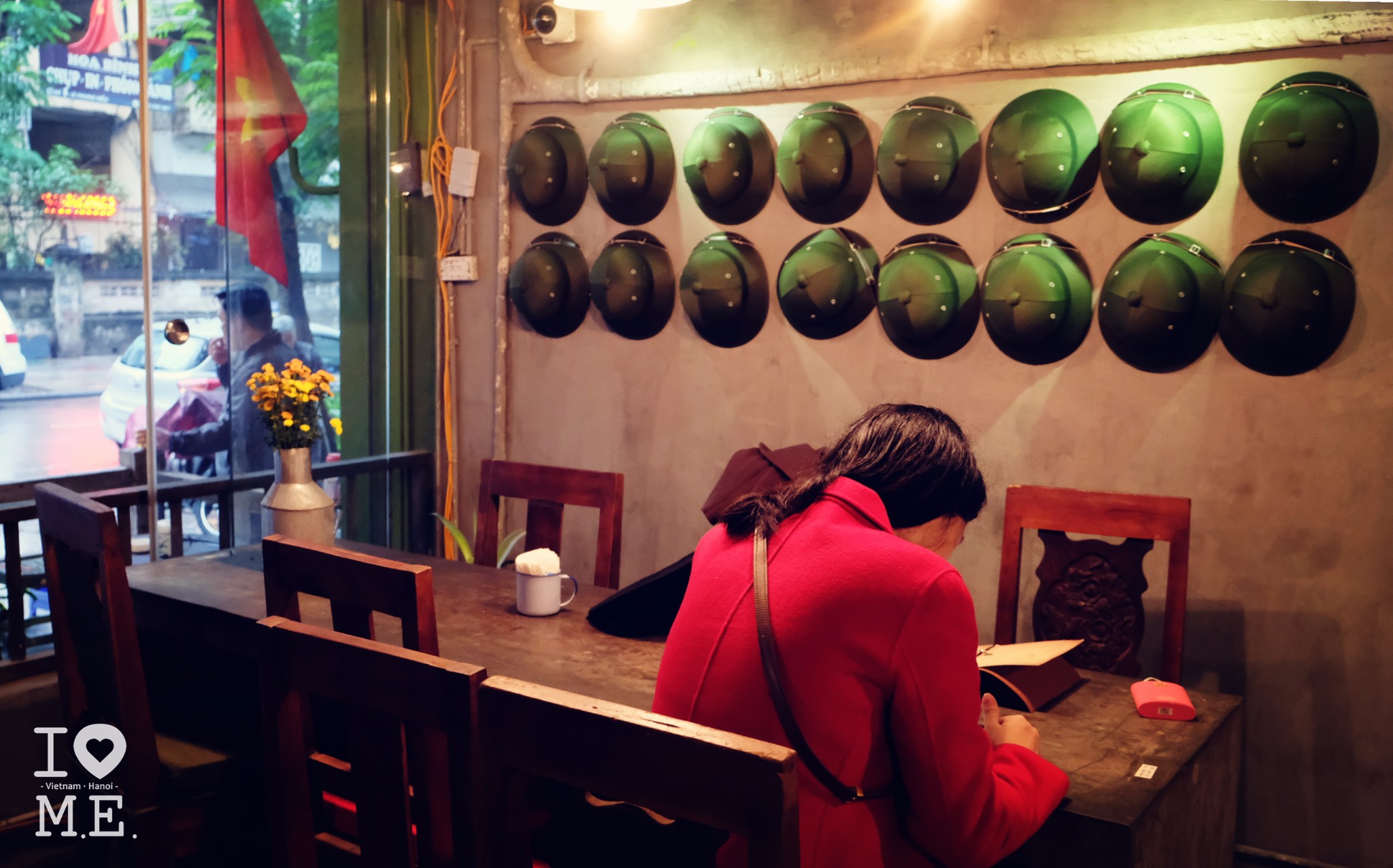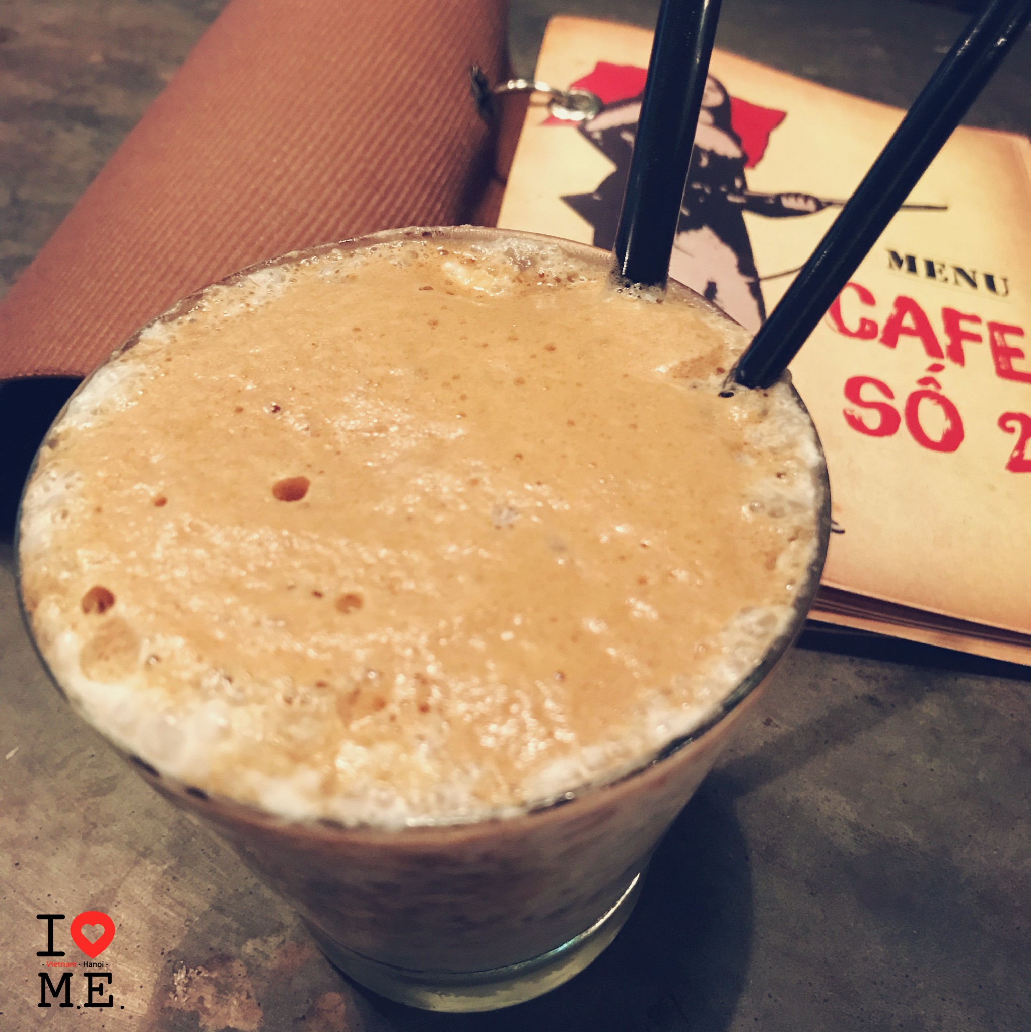 这时天空中绵绵的细雨似乎有愈演愈烈的趋势,我们就顺势躲进了路边一家看着装修还挺特别的咖啡店,店名叫 CAPHE SO2,顺便喝杯咖啡提提精神。点了咖啡酸奶还有冰牛奶咖啡,价格大概都在25000到30000VND,味道还不错,就是我的冰牛奶咖啡有点偏甜,而且每一口都感觉背后有母后大人射来犀利的目光,乖宝宝还是不要学我们一大早空腹喝冰咖啡
