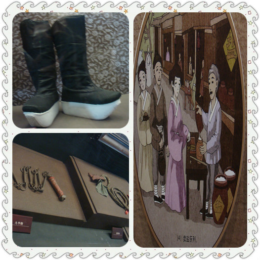每每逛博物馆都能让我发现很多好玩的东西 左上是以前的戏剧鞋 现在的松糕鞋是不是就是照着它做的呢 吼吼