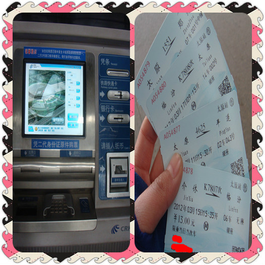 在太原 火车站自动售票机处把在网上定的票全都打印了出来
