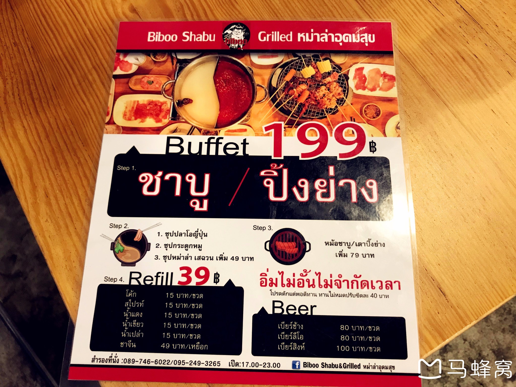 3、199泰铢只包括菜品,火锅需要增加泰国底料费49泰铢,碳烤炉子是79泰铢,水酒需要单独付钱。可乐15泰铢,啤酒80泰铢起。