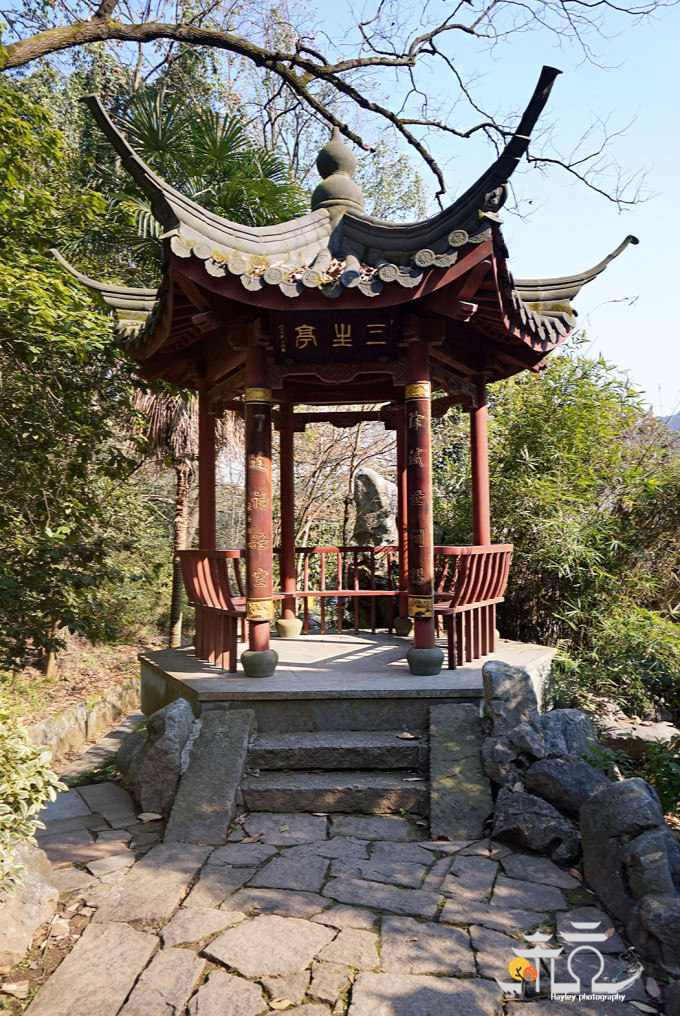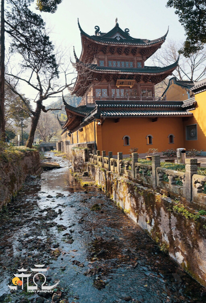 法镜寺是国内仅有按照《药师经》仪规设计的寺庙,堪称传统佛制,也是西湖边唯一的女尼寺院。外墙明黄,山林掩映里色彩静谧、鲜亮,后面是三生石,紫藤缠绕情缘万千……