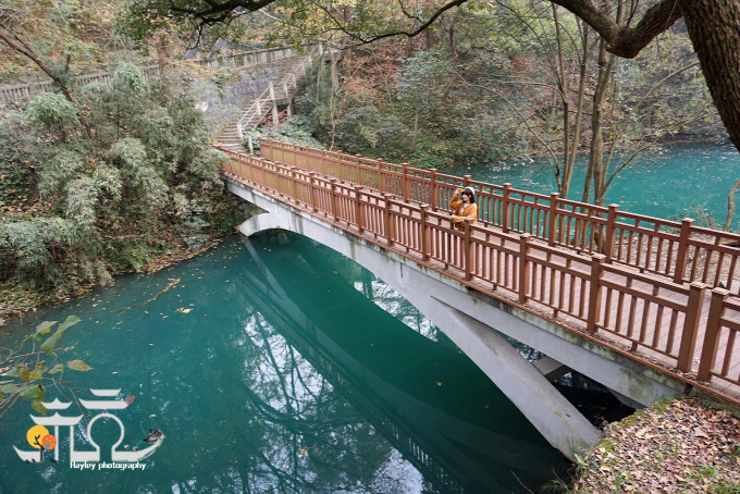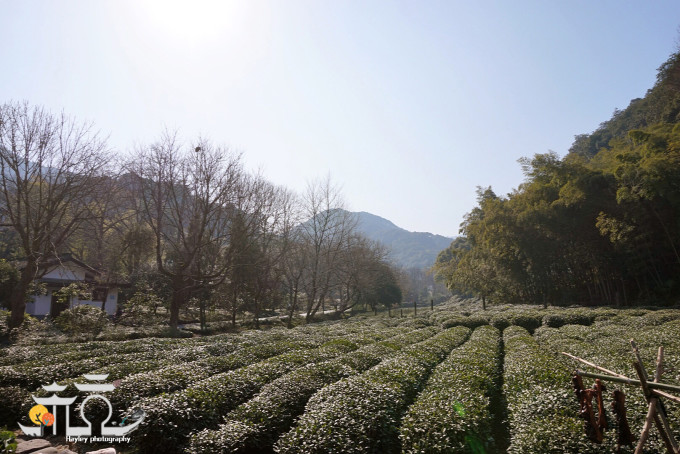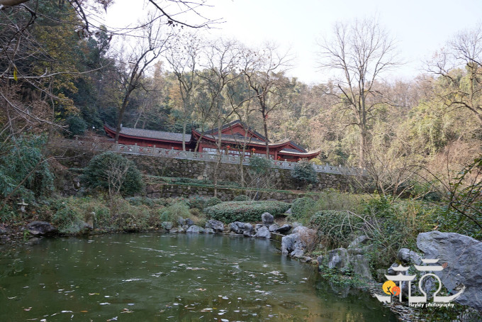 沿山道而上,前方有龙井茶香,树木苍翠,偶尔还能听到莺啼鹊语。前后各一桥,处处闻溪水声。