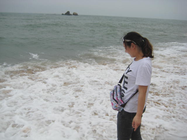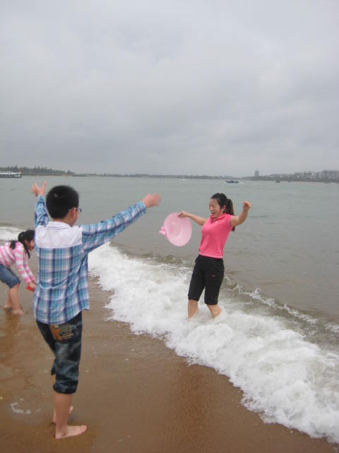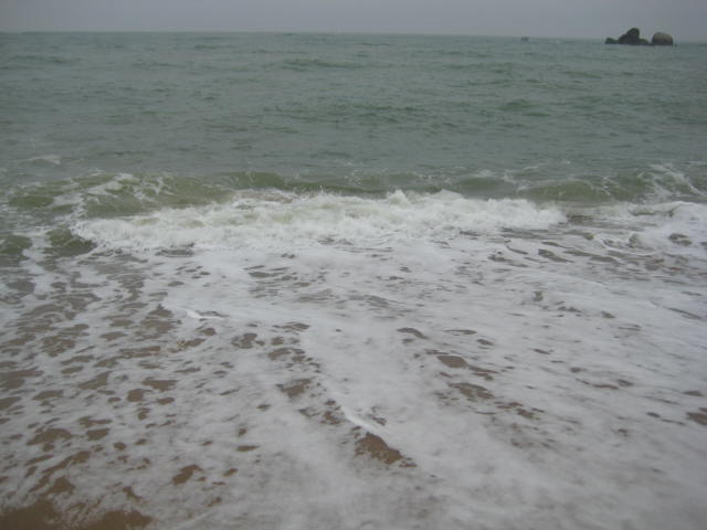 玉带滩 的沙子很粗的,咯脚