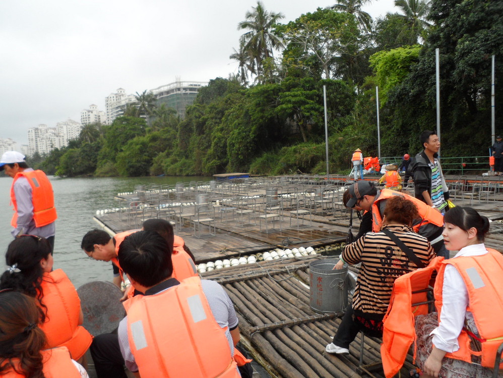 万泉河水清又清,其实已经没那么清了,而且万泉河竹筏没那么好玩,就是在前面的电动龙船上