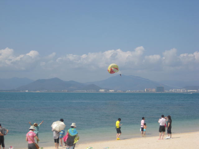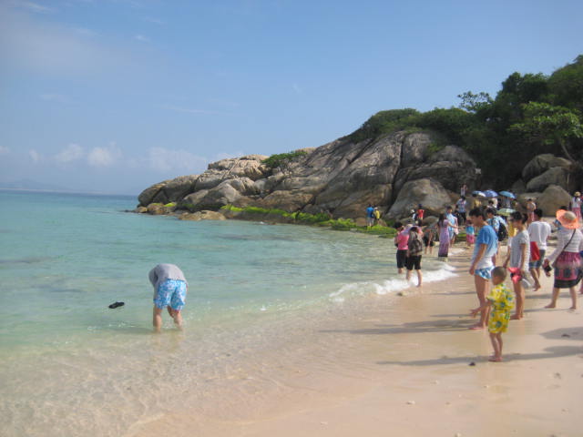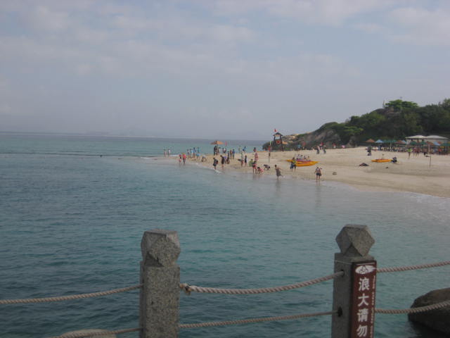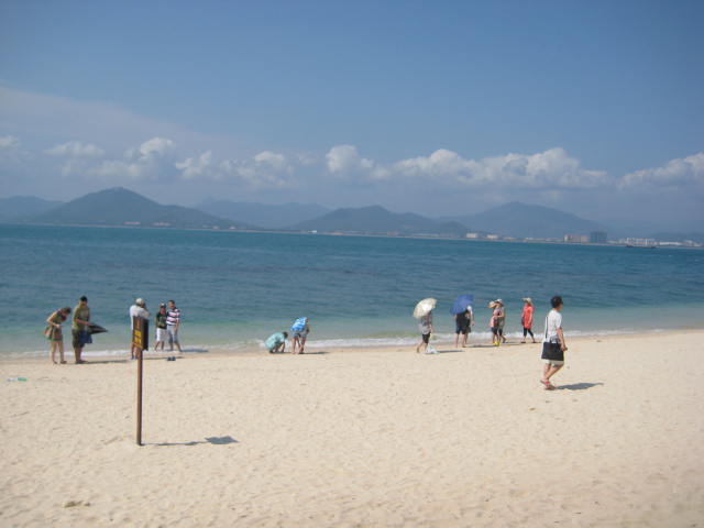 蜈支洲岛 。。 在海南 可以说是名气很大的一个岛了,但是据我们了解,它的名气之所以大,是因为当地政府花巨资打造而成的,沙滩真的好小哦。。