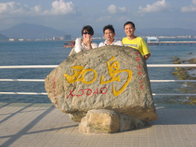西岛 真的很漂亮 本来想照这个标志物 结果一波又一波的人流啊。。 在那里照相,所谓相逢就是缘,这次美丽的海南 之旅,就以你们三个来结束吧!!! 三亚 很美,你,值得拥有!!