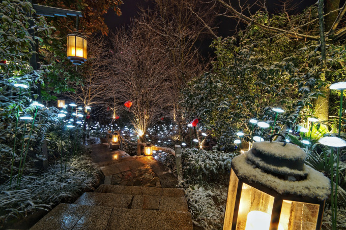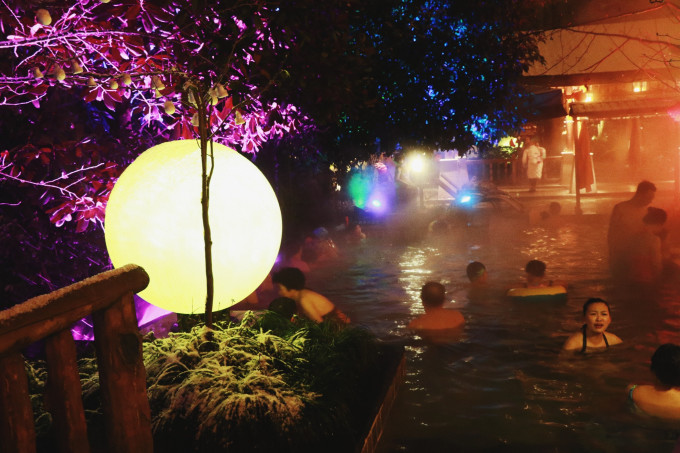 白天时候的惊鸿一瞥便已觉得心驰神往,到了晚上换好衣服出来的时候却是被眼前之景所惊艳,这才后知后觉“梦幻冰雪温泉”的梦幻之处来。
