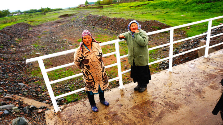 海拔逐渐升高,天下起了雨,我也到了进山前的最后一个小镇Kotchkor。从满是饲料和家禽的中巴挤下来后,换上了更破的一个中巴,开向了一个我也不知道目的地的地方。汉子说会在某个路口等我。鉴于Google地图早已不显示道路,我只能心中默默祝福在雨中能看见某个山间路口骑着白马等我的那个男人。