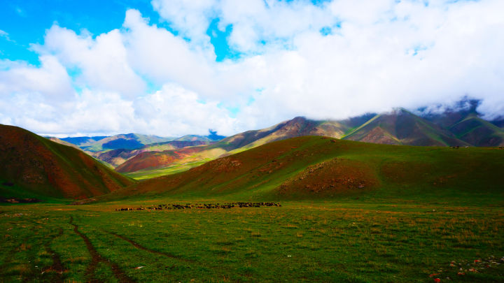 草原策马奔腾向雪山