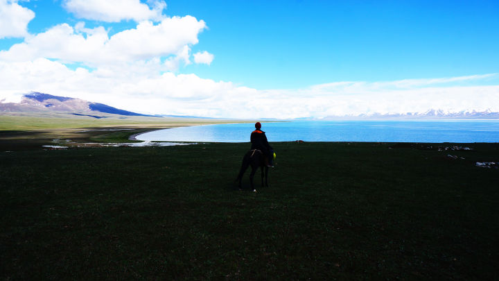 静静的坐在湖边,看着马儿懒洋洋的吃着草,远眺湖对面的雪山,听着微风吹过耳旁的声音,感受着存粹和原始的自然。我想,天堂里也应该有这么个个湖,这么片草,这么个雪山,这么匹马。