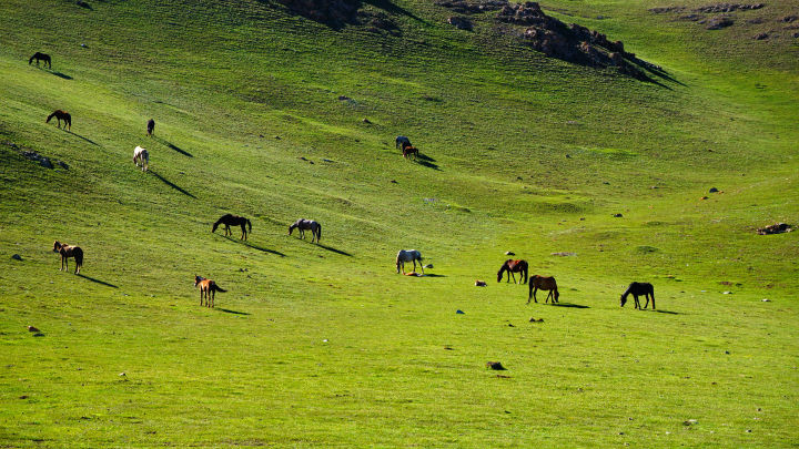 挤在满载的牧民中,颠颠簸簸开了好几小时车,看着窗外流逝的马群和蒙古包,我心想,这个坐着七彩祥云,骑着白马来接我的吉尔吉斯牧民汉子,会是一个怎样的汉子呢?