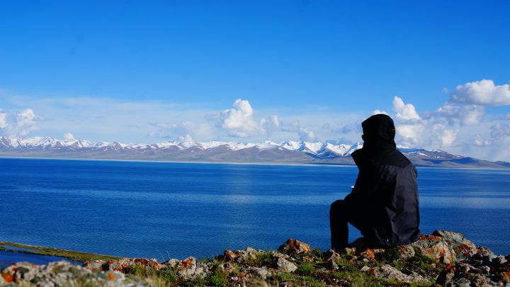 静静坐在湖边