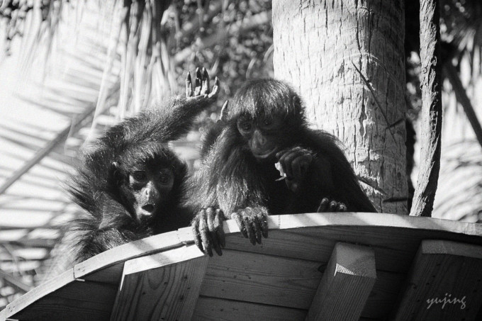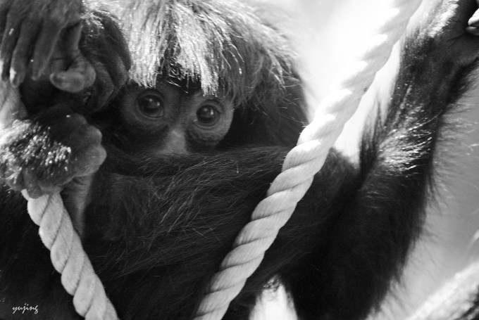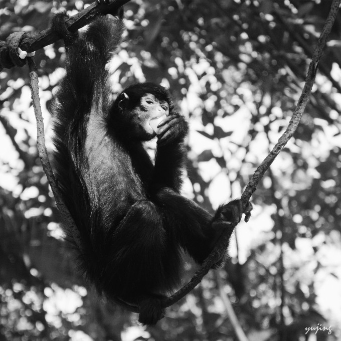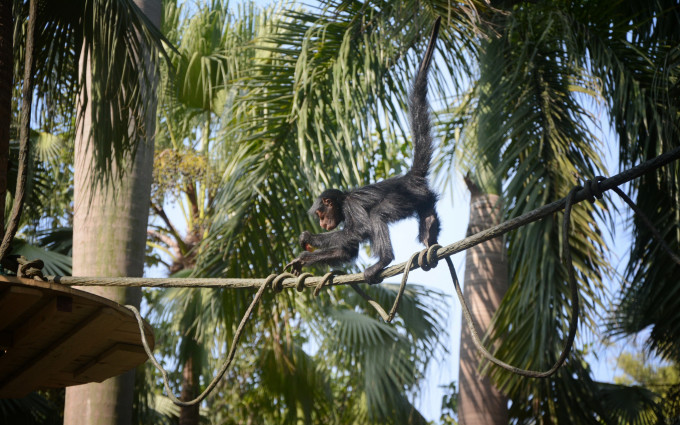 黑蜘蛛猴,阔鼻猴类,身体瘦小、苗条,体态轻盈。