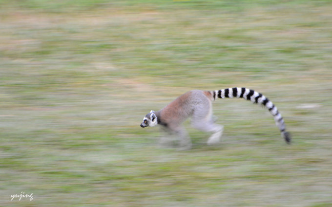 环尾狐猴,属于原始灵长类,吻长、两眼侧向似狐,因尾具环节斑纹而得名。