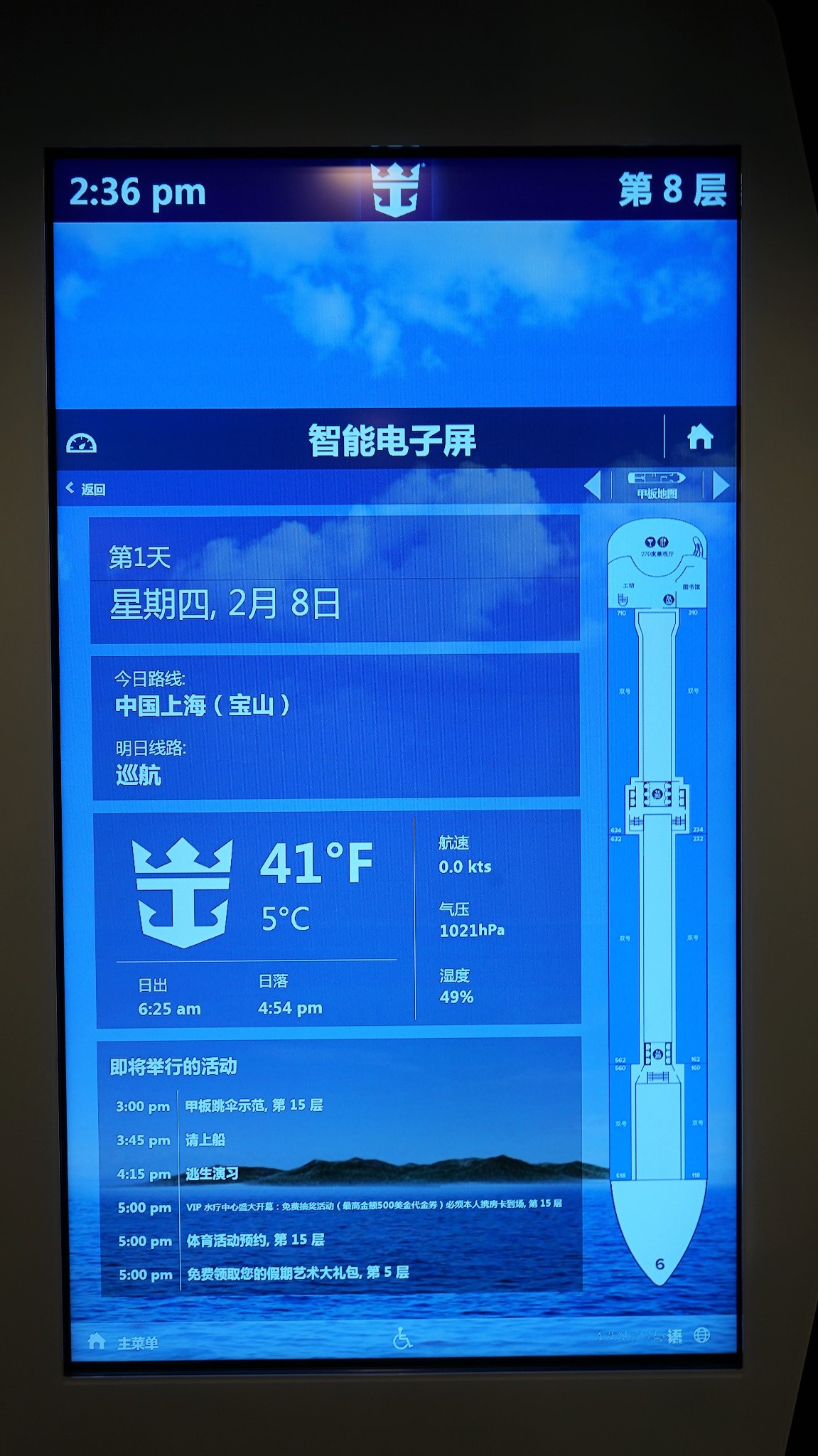 提前下载好 royal iq ,登船后连接船上wifi,才能看到相关信息。app对船上所有活动都有介绍,包括特色餐厅的菜单都很详细。我们船上所有活动都是通过这个app预约。
