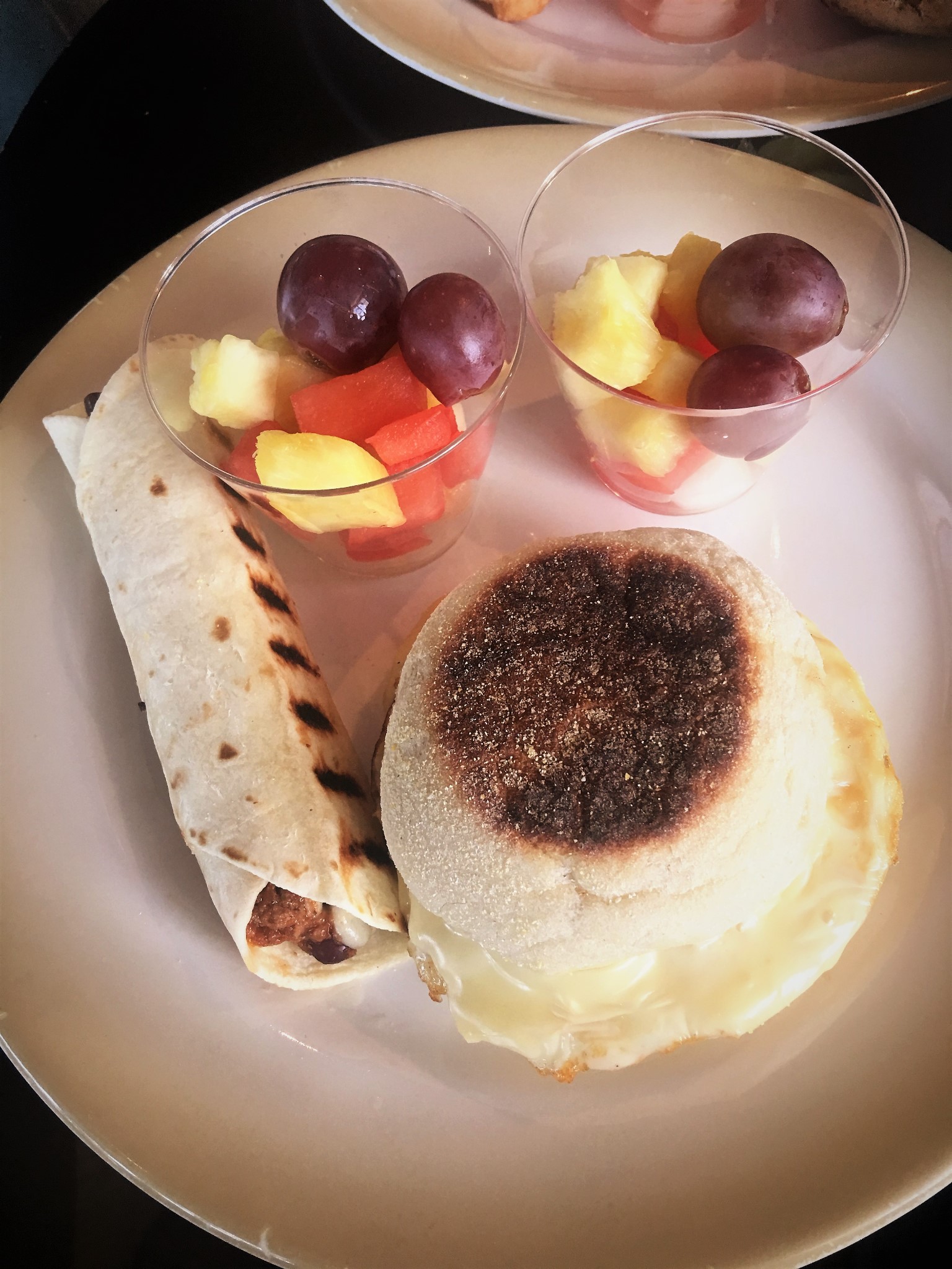 第二天早餐选在270度观光厅(也就是two70,注意与270的关系),种类虽然不多,点了一碗(注意量词)牛奶。服务员小哥都是用同一种大碗装粥和牛奶。