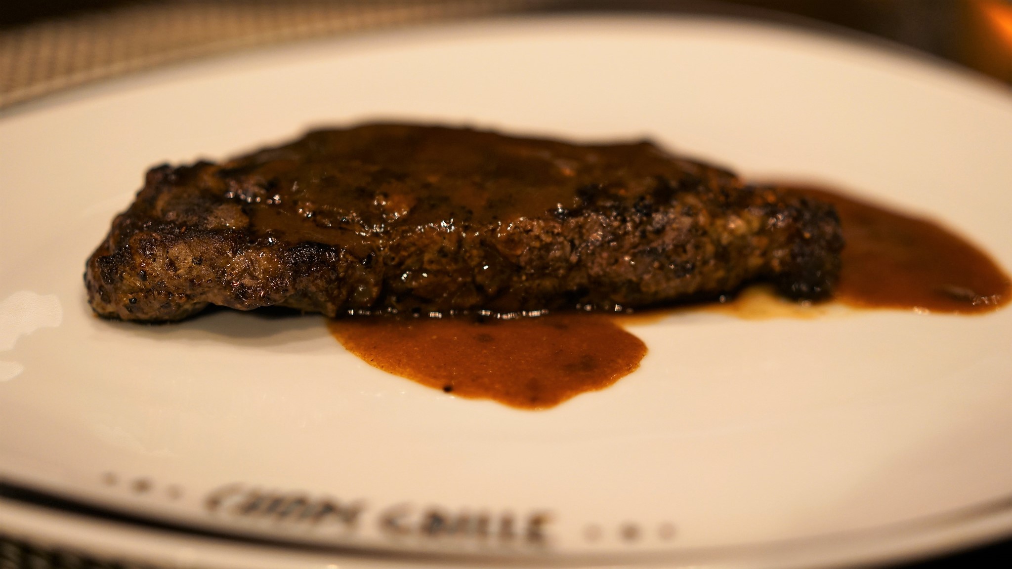 主菜选了精致纽约牛排,端上来我就后悔了,0.34千克竟然有这么多。推荐食量小的游弟、游妹们选菲力牛排。牛排味道还可以,三个字概括“有点咸”。晚餐回房间后,向小朋友了表演了吹瓶(一口气喝完一瓶矿泉水),仍然意犹未尽。