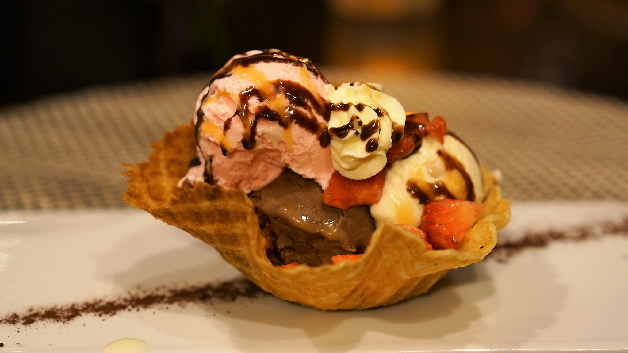 饭后还有三球冰淇淋,这个还不错,蛋皮也挺好吃的。