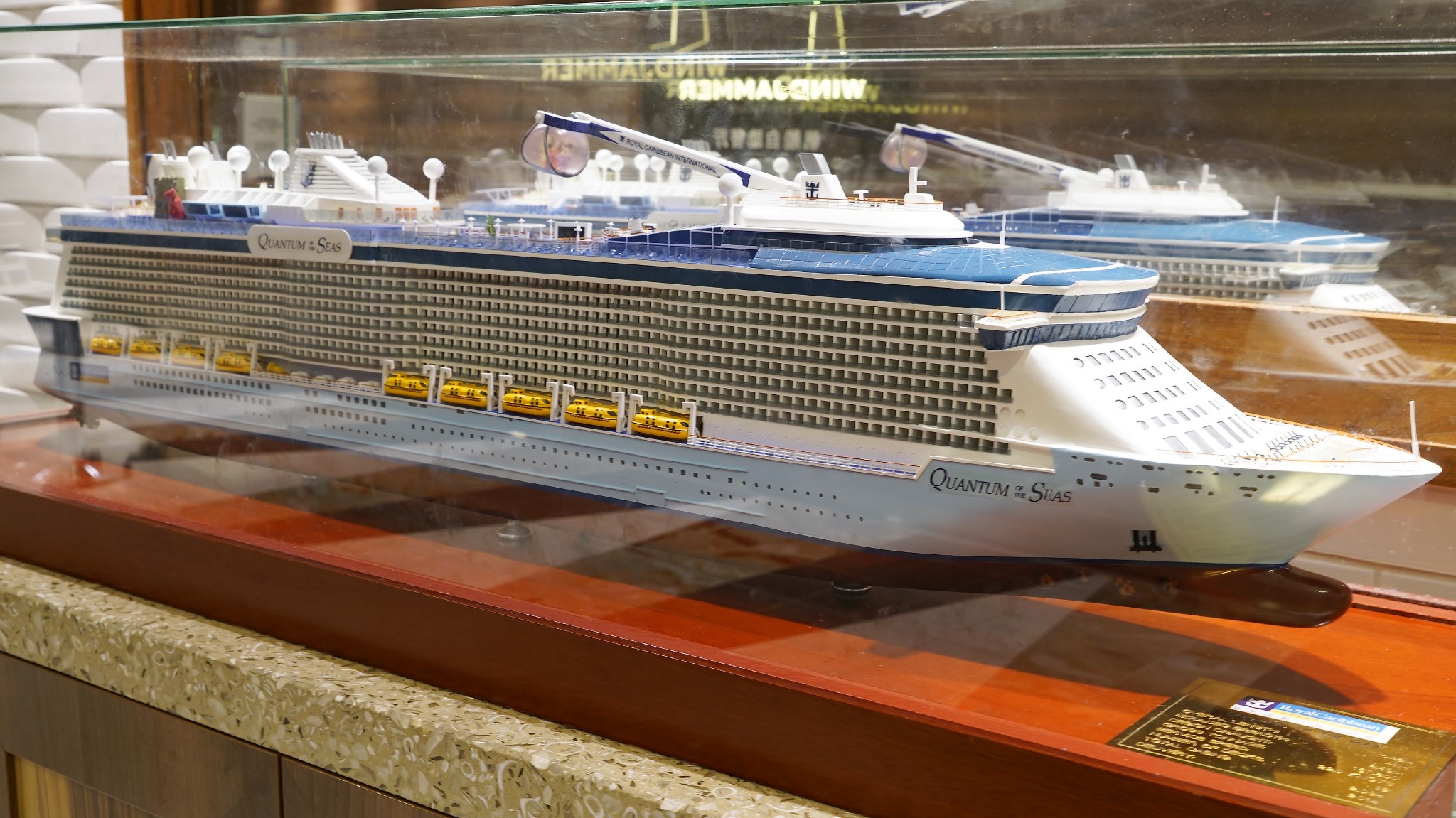 帆船餐厅前的量子号模型。比喜悦号船模明显小一号。