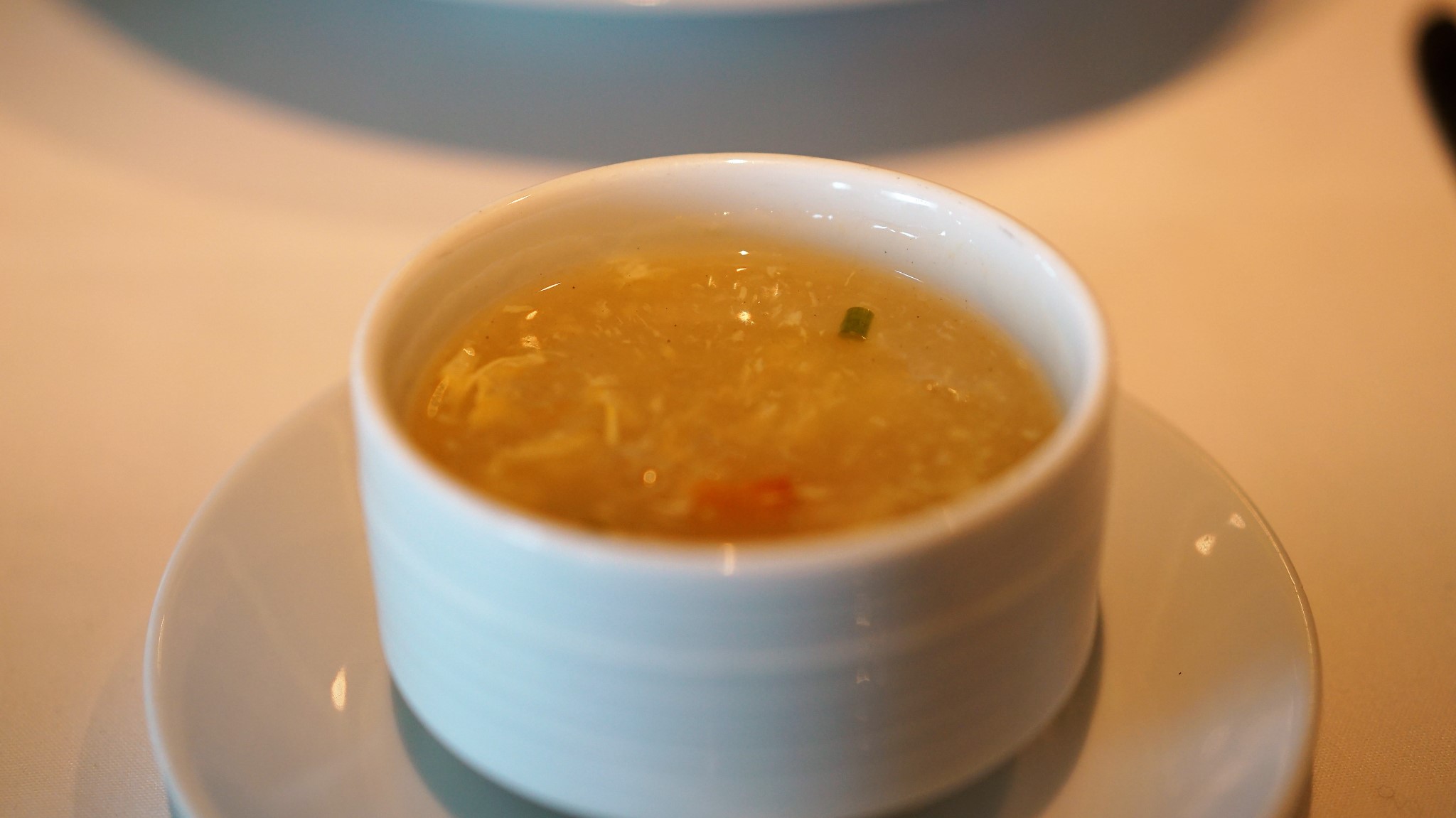蛋花汤有点黏,挺好喝,如果胡椒味少一点就更好了。