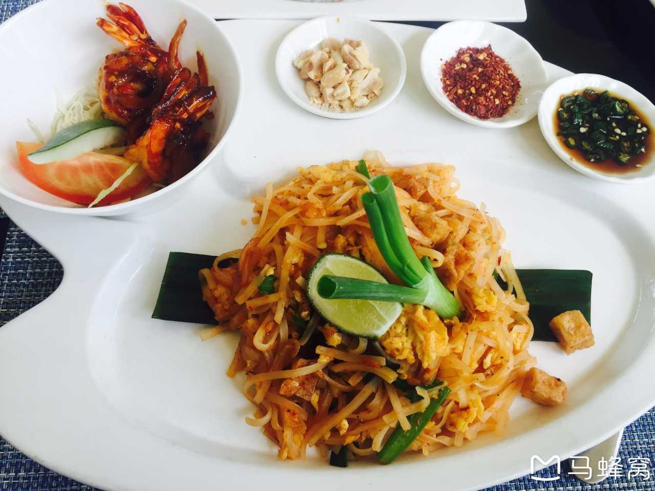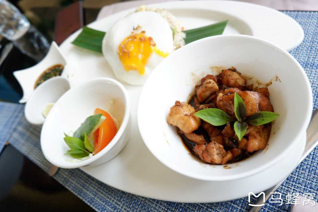 稍作休息,我们决定在酒店漫步,沿着泳池拾级而上,首先看到了酒店推荐的两家餐厅集合的一幢玻璃小楼。楼上是泰式餐厅Saffron,楼下是西餐厅DOVE。再往上走,途经一处静谧到无人的无边泳池后,就是悦榕庄一线海景独栋别墅,贵有贵的道理,同在一片区域,海景却高下立别。惦记着时间,拍了几张照后,折回到餐厅准备晚餐,泰式餐馆只在晚间6:00-11:00营业,所以我们选择有露天平台的DOVE,三人点了炸海鲜、 无骨烤鸡、 蔬菜拼盘、 番茄肉酱意面、 脆皮华夫冰淇淋分别作为开胃菜,主菜、主食和甜点。上菜速度略慢,等待间隙,俯瞰海景,尽享海风,心无挂碍便是美好。菜式味道不错,价格也并没想象之贵,人均300,前提是我们没有点酒水饮料。吃完后,已到红树林行程时间,车子准时等候,也并无特别联系方式,这种约定好时间赴约的感觉像极了小时候和朋友约好,几点几分在学校门口见,也无遇不见的可能,通讯发达了,迟到却多了。