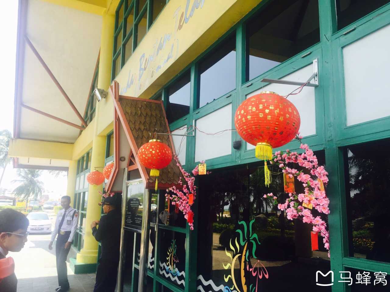 整理好行李,退了房,发现酒店账单上房间的物品费单收,一晚15000印尼盾,也有一笔资源的环保捐赠费,同样是15000印尼盾。酒店有安排免费班车送到码头,根据船次时间大约提前一个半小时。码头装饰一新,新春的桃花和灯笼随处可见,印尼人也如此重视春节。凭借购票单据先到换票处换票,后在等候间隙和一工作人员闲聊,民丹主要游客有中国人、印度人、新加坡人、意大利人、韩国人,其他几个国家都能想明白原因,只是意大利人钟爱此地让我费解。