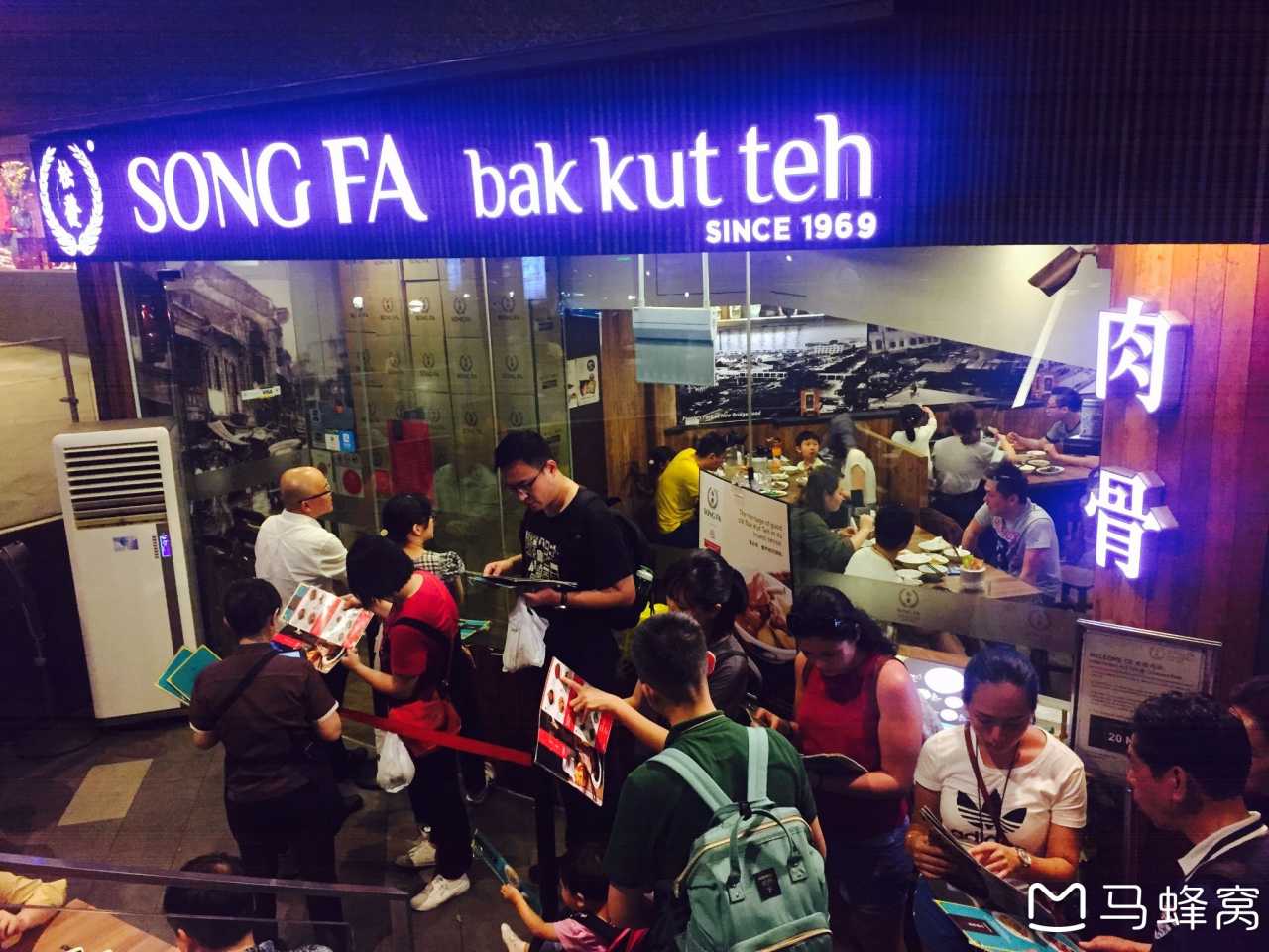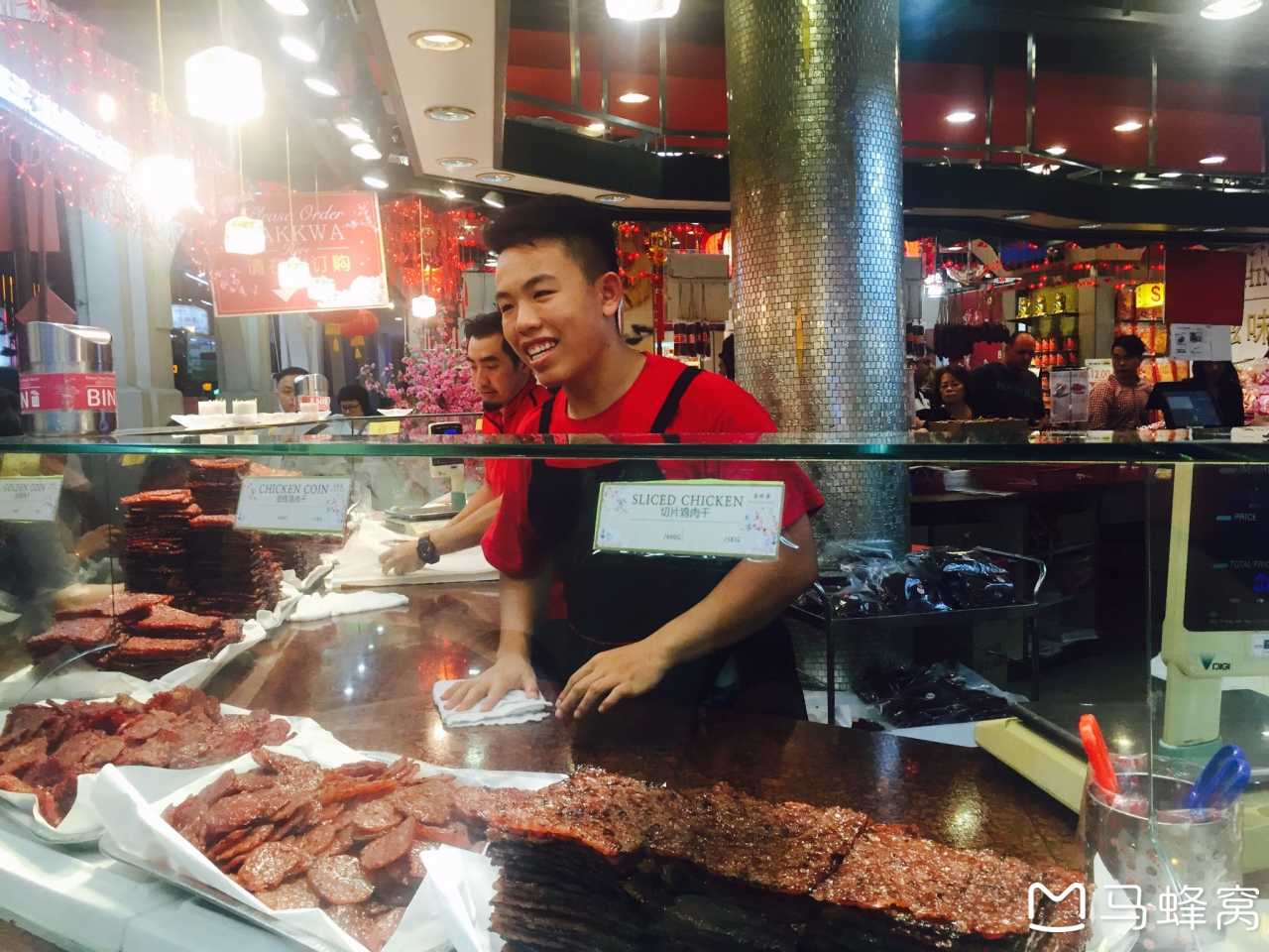半小时后到达酒店,地理位置绝佳,对面就是来福士商场和地铁站。我们决定步行去牛车水,尝一尝传说中的松发肉骨茶。虽然比想象远好多,但是傍晚天气凉爽加之干净安全的街巷,走也不觉累。牛车水即英文的Chinatown,此时新春气氛浓厚到不行,街口处有巨大的狗狗造型彩灯,四处张灯结彩,平安吉祥字符高悬,仿佛回到了小时候的杭州街巷,只是现在年味淡到几近虚无。经过美珍香肉脯店,队伍拍得很长,春节期间24小时不打烊,我们买了一点碎肉脯作为零嘴,晚饭就在松发肉骨茶解决。店铺不大,两扇门外同时排队,边排边点餐,一人一份当家肉骨茶,我加了猪肝,她俩选择猪肚,油条一份泡汤,白灼菜心一份清口,猪大肠一份增味。肉骨茶有很浓的胡椒粉味,个人认为不如妈妈牌筒骨汤,猪大肠平日不常吃,这里的倒浓油赤酱的到位。