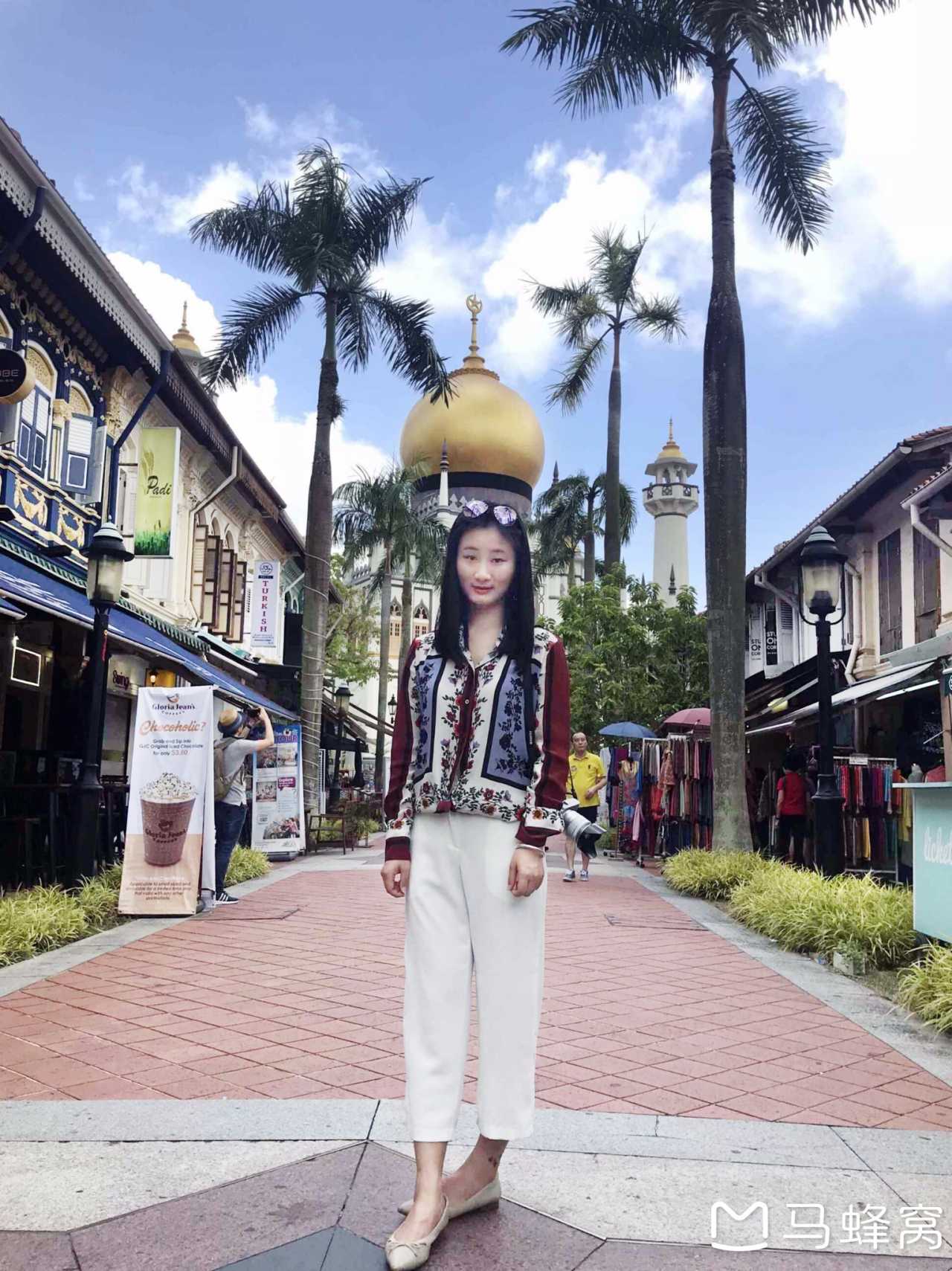 吃完还不错的酒店自助,我们开启一天的暴走行程。首先来到甘榜格南阿拉伯街,其中一个主要建筑是坐落在巴梭拉街的苏丹回教堂。建立于1928年的苏丹回教堂是新加坡最大的回教堂,可容纳多达5,000名回教徒同时在回教堂内集体祈祷。它那庄严的巨形金圆顶极具特征,去时不巧,恰逢不开放时间,只是外围看一看,以此为背景拍了照片留念。您如想进入寺庙参观,请穿上长袖上衣和长裤、长裙。