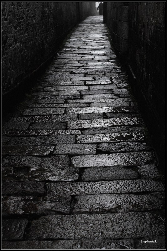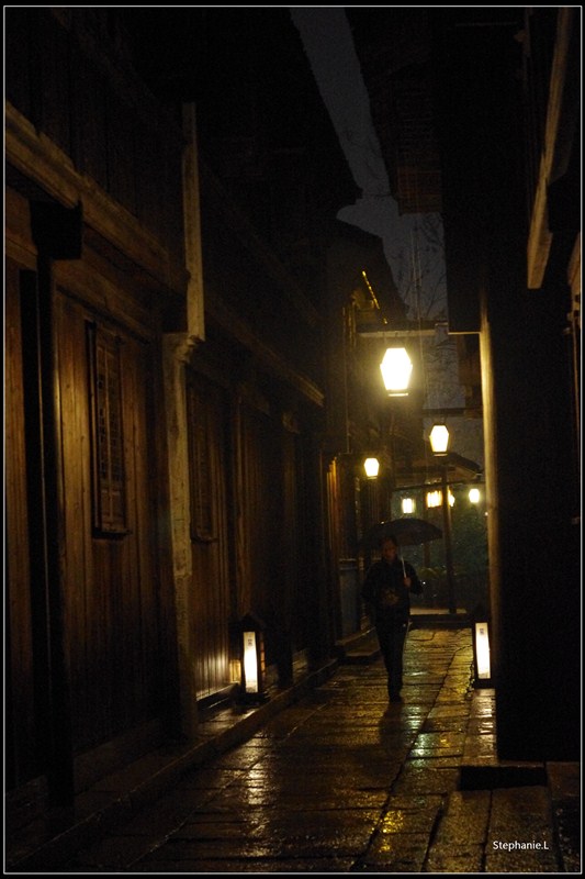 九点,雨小了,星星点点的。一个人,冒着雨,在荧荧灯光下,慢慢的走,无目的的,也不担心迷路,毕竟这的每条桥,都可以回到同一个地方,不是么?