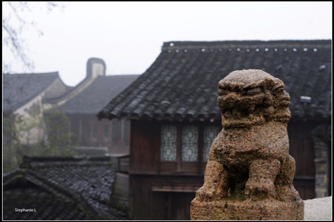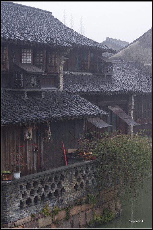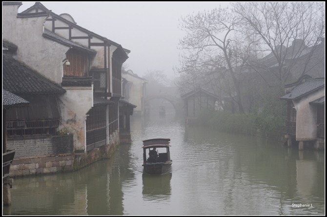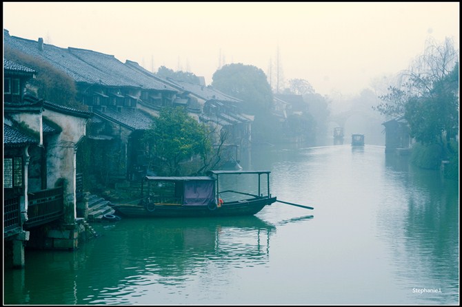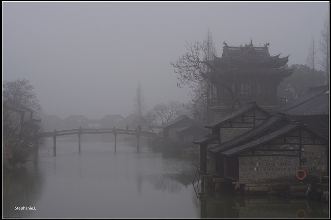 清晨时,在人们都还在梦乡里的时分,乌镇也沉睡着。我恍惚的踱步,悠转,坐在桥边的栏杆上,看着雾中的水乡,荡漾的河水,什么也想不到,也记不起。