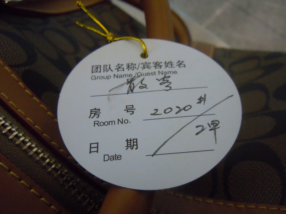 行李上挂的行李挂牌,挂好后就会有专人送到房间内