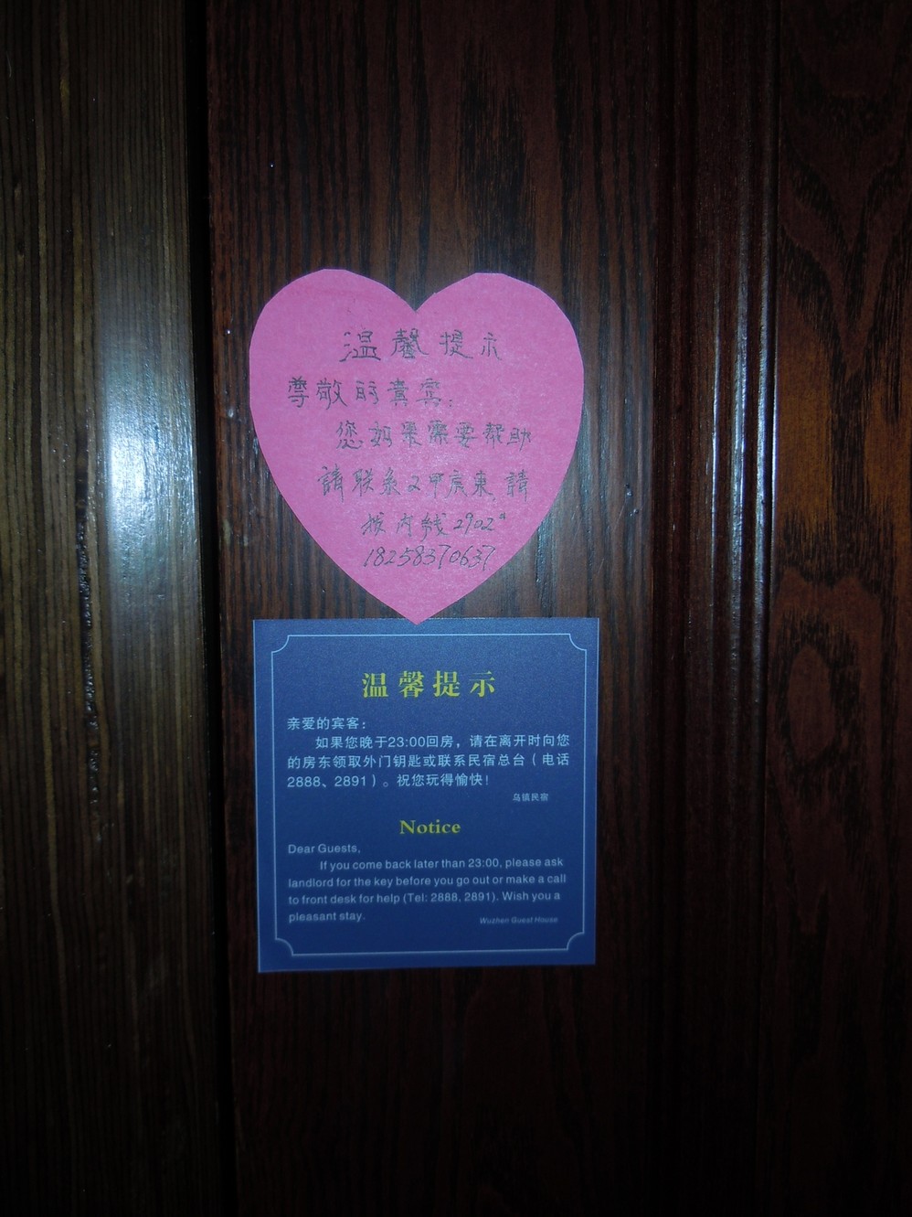 请注意:办理入住时,前台客服人员是不给你房卡的,只有你到了住宿地点,房东会给你