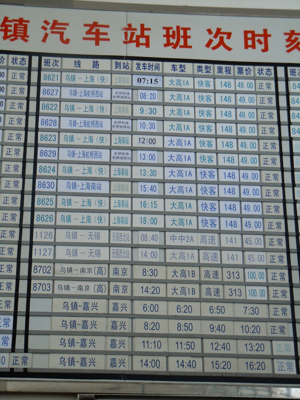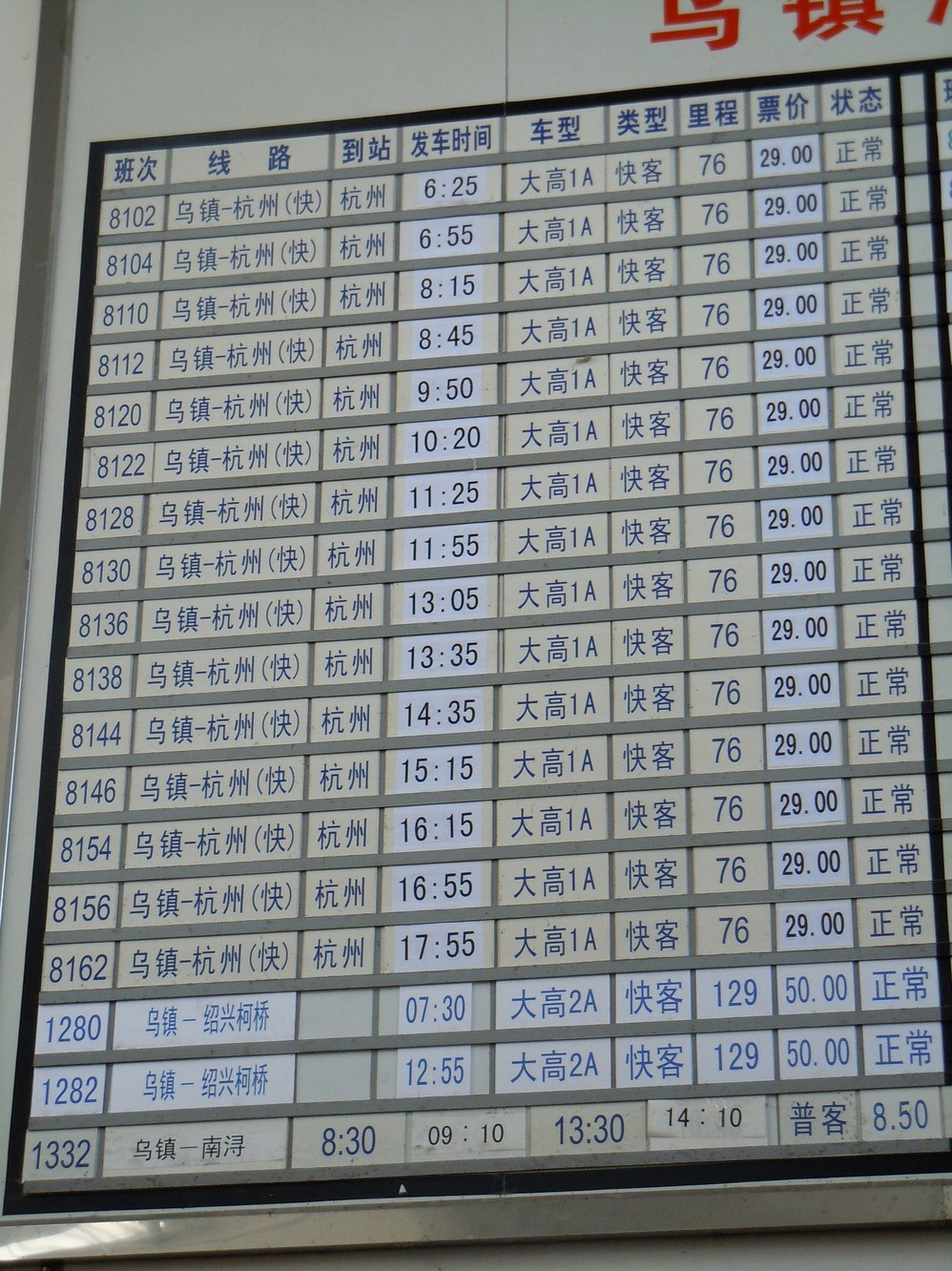 如果这班没买到票,就要等到2点才有车到乌镇 了