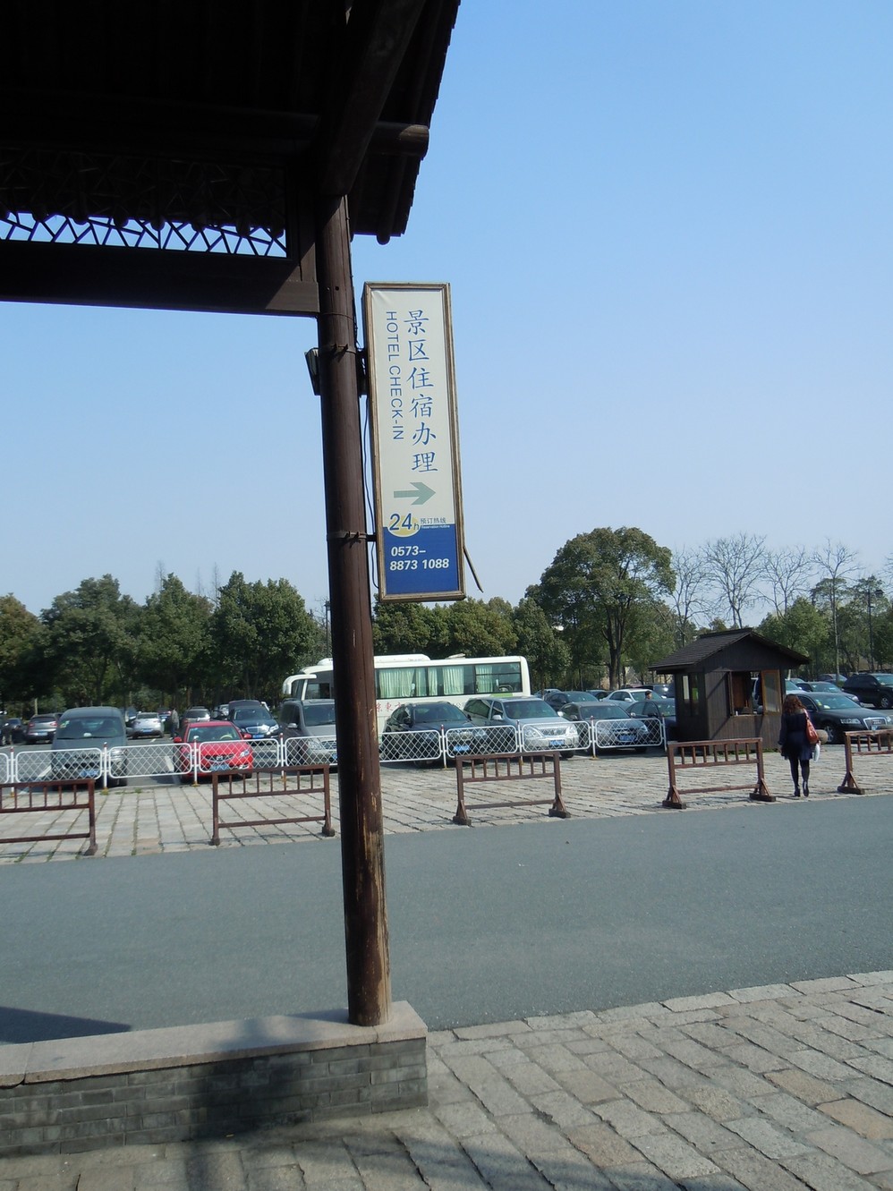 首先就是办理西栅出入证,然后到停车场的位置乘坐免费东栅-西栅班车