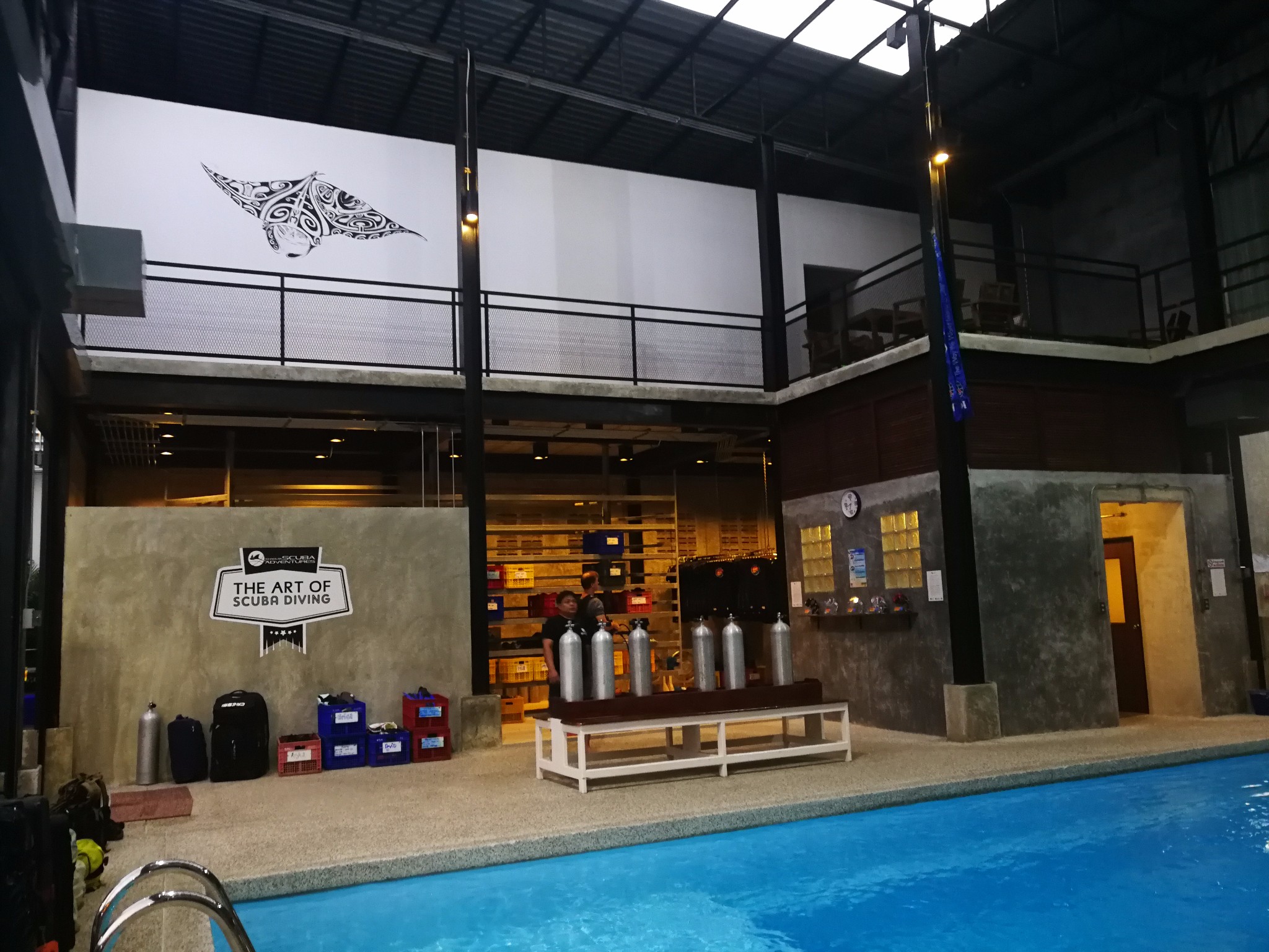 如果船宿还在他家学课程还可以有10%的折扣,有8瓶免费的高氧气瓶,相当于船宿5天,有4天的头两潜都可以用高氧。后来我就多预订了一个高氧课程,正常减完折扣应该是6750,然而实际交钱的时候前台不知道有折扣这事,我也没想起来……按原价交了7500泰铢的课程费,损失了150多块钱……