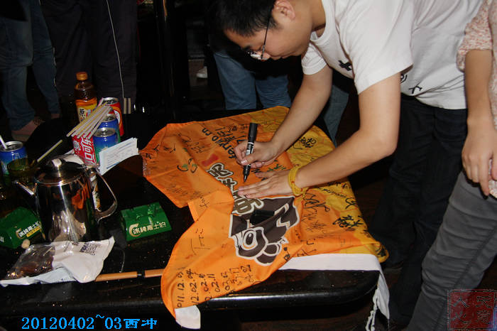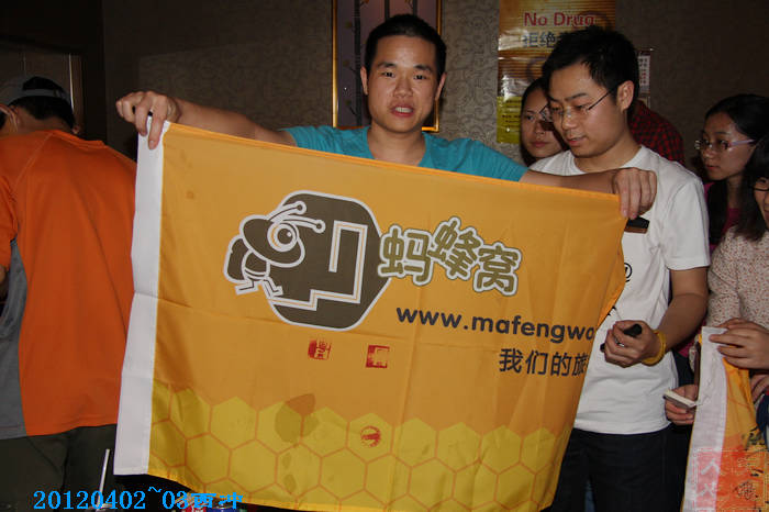 在广州 舵的蜂旗上签名留念