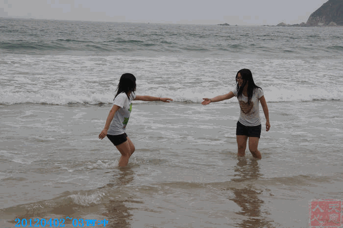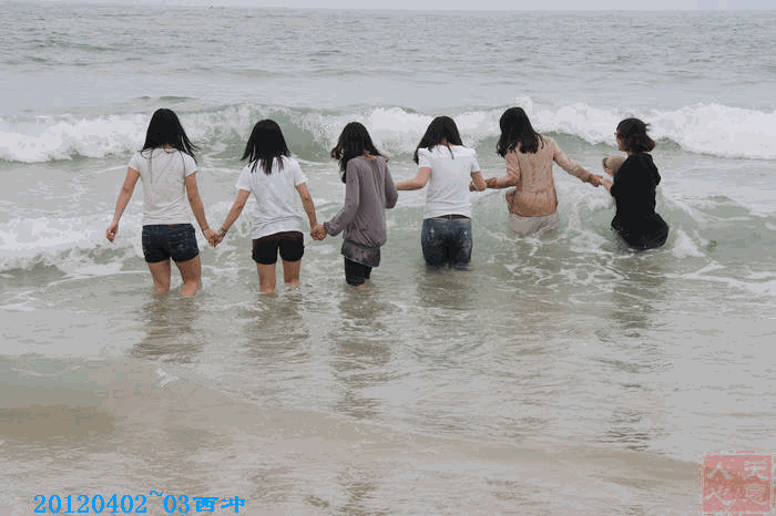 她们踏着海浪,寻找着,寻找着、、、、、、