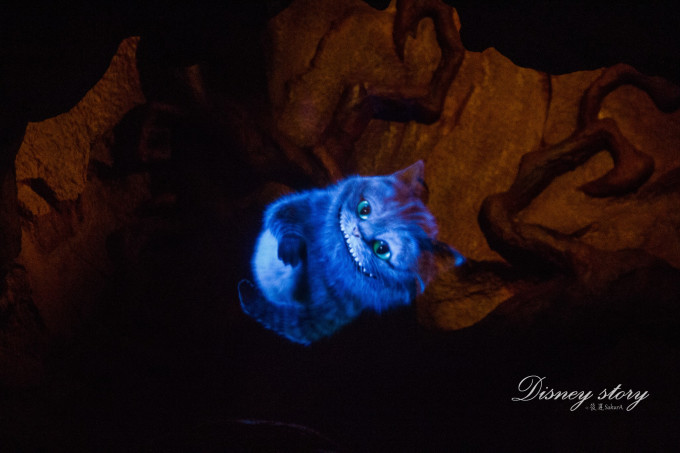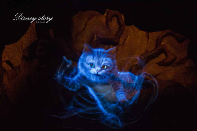 在一处小过道里看到几个妹子拿着相机对着一片黑乎乎的墙壁,好奇心让我们也静待究竟会出现什么,不一会儿,柴郡猫的幻影出现在眼前,正如电影里一般神秘莫测,幸运的抓拍到了~