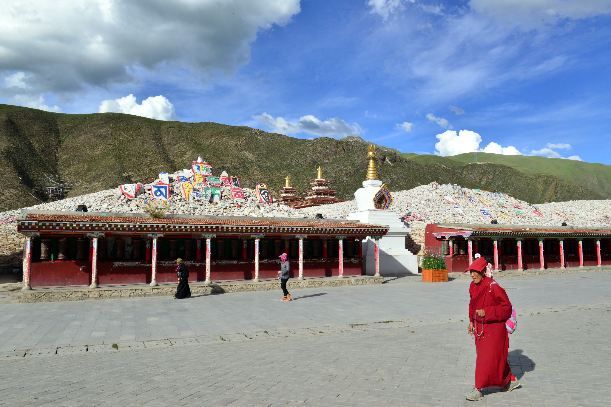 我们和着藏民的脚步,围绕玛尼城转一圈。世界最大玛尼城不是浪得虚名,转一圈也看不够这些雕刻精美的佛像和经文、经塔。。。