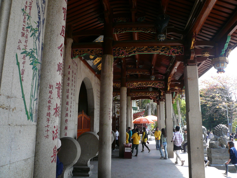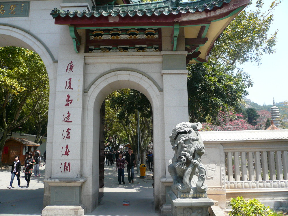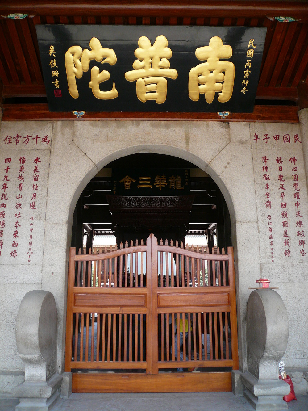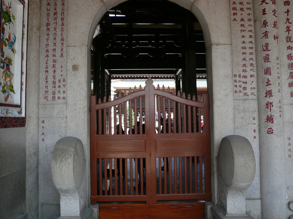 殿前为入寺正中大门,两只威武的大石狮 雄踞门廊东西两侧。