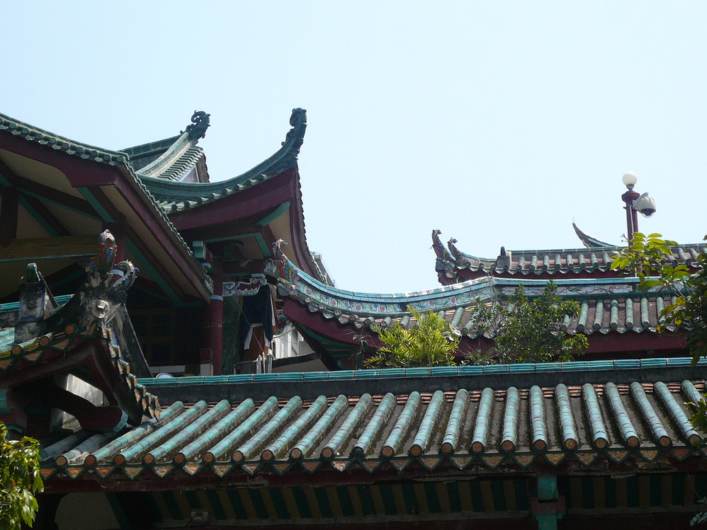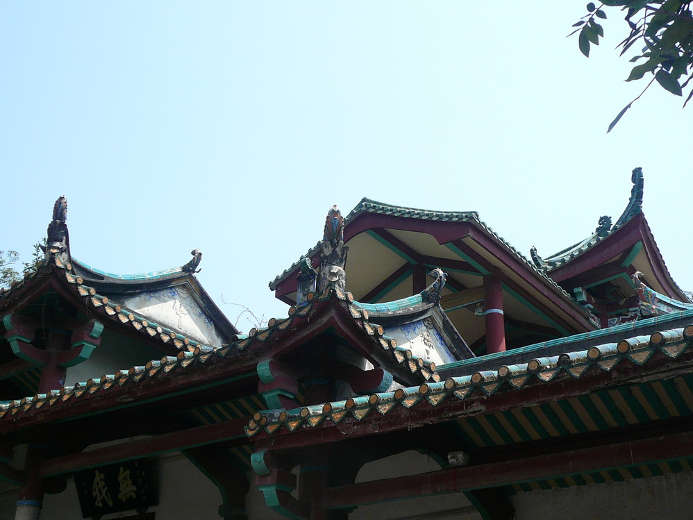 殿宇的重檐飞脊,覆以黄瓦皇冠式大屋盖