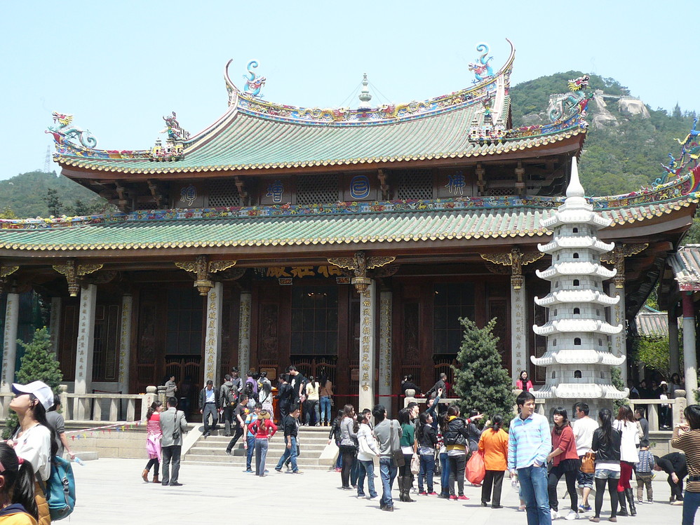 是寺院的主体中心,具有典型的闽南佛殿的特点,崇宏雄伟,殿前石庭
