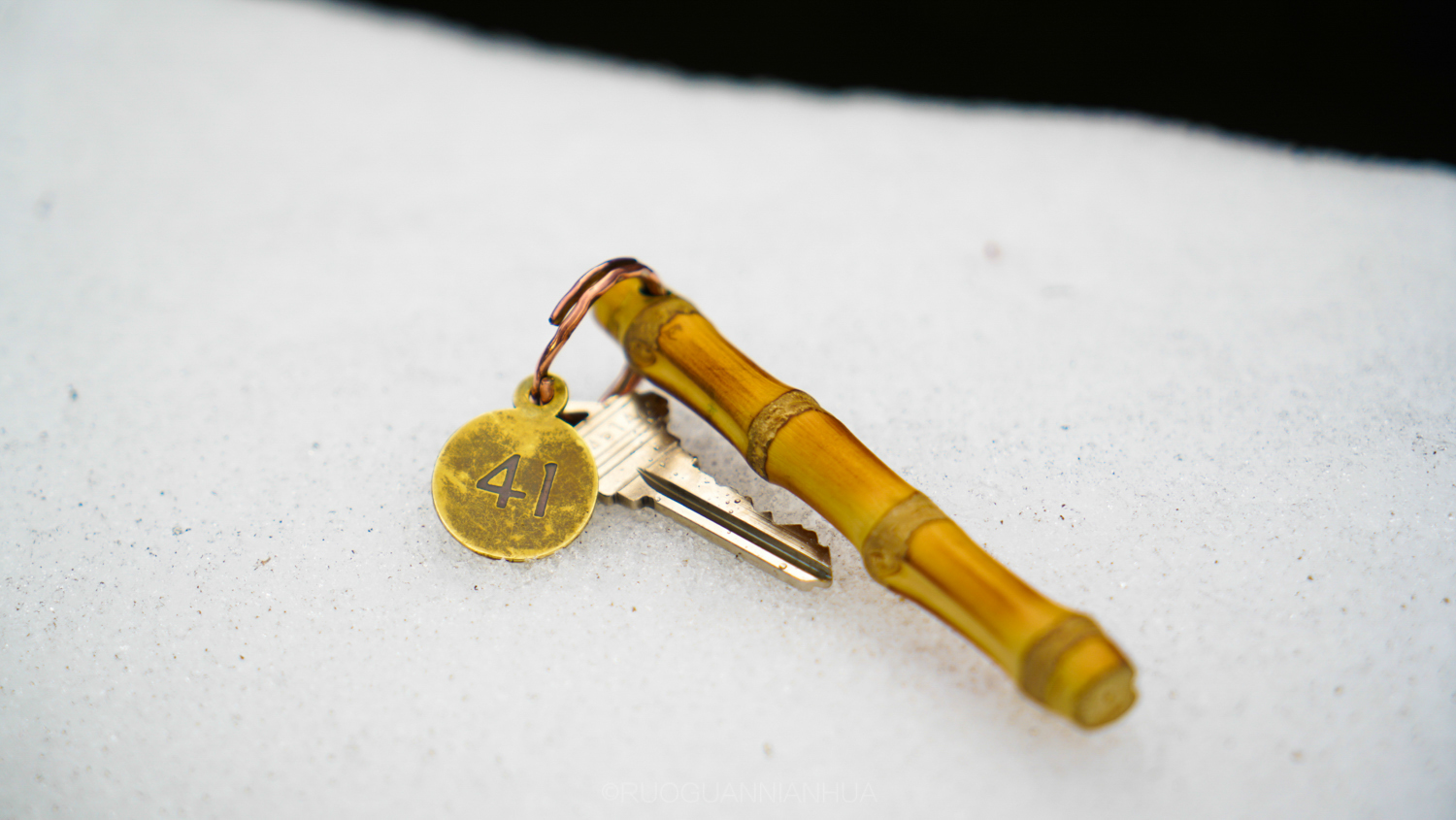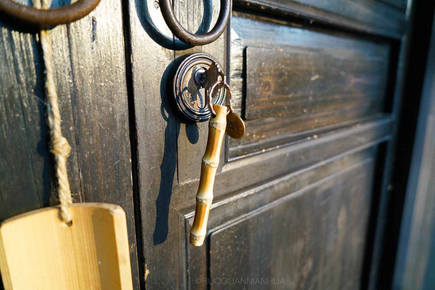 房间没有电子门卡,取而代之的是用竹节制作挂饰,串联着门牌和钥匙。