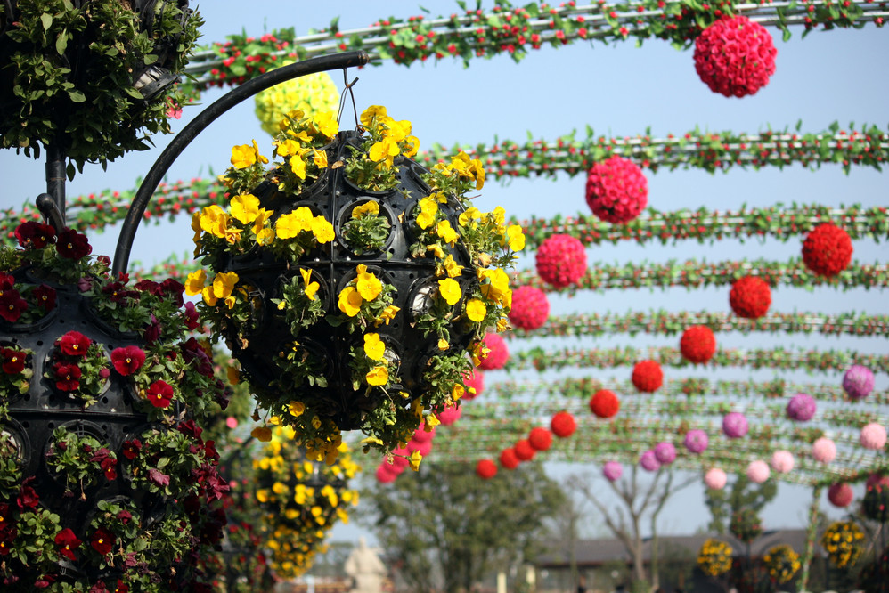 园内各色花花争艳