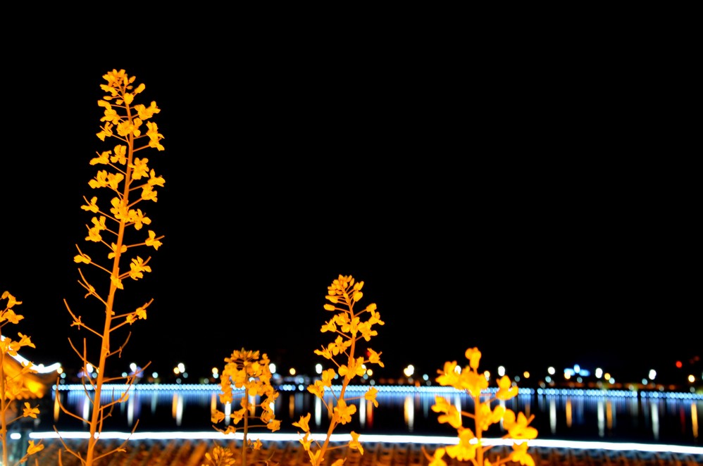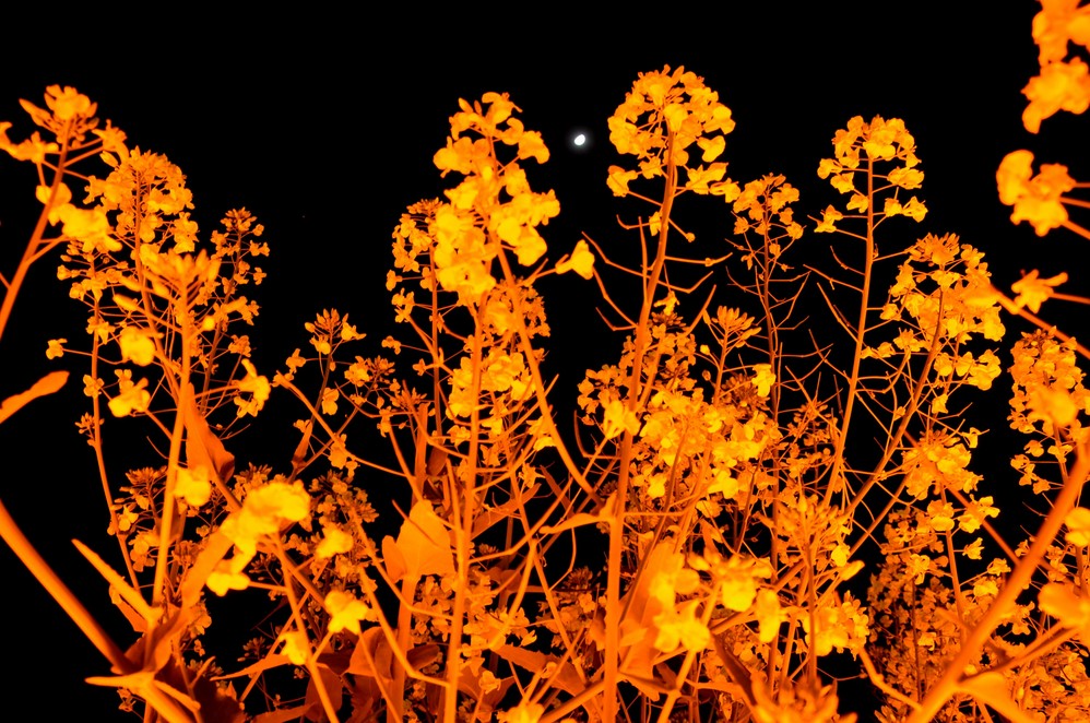 油菜花儿开在夜晚,这个样子的。总结来说都是美不胜收啊